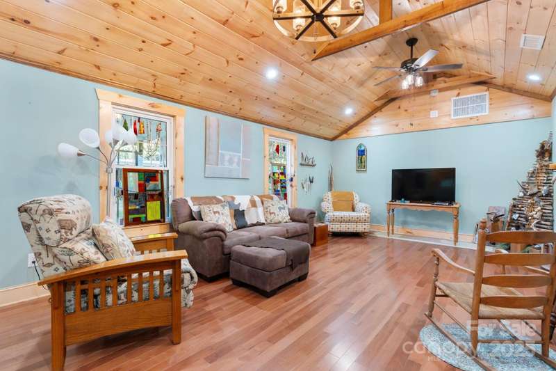 Welcome to your private retreat-an updated 2-bedroom, 2-bath ranch nestled on nearly 14 serene acres. This beautifully maintained home offers the perfect blend of comfort, function, and natural beauty. Inside, you'll find gleaming hardwood floors throughout the main areas & stunning tile in both bathrooms. The thoughtfully designed kitchen features an island, built-in storage solutions, & plenty of workspace, making it ideal for both everyday living & entertaining. Main-level laundry room adds convenience. The full basement, accessible by a exterior entrance, is currently used as a crafting space-perfect for hobbies, storage, or future expansion. Wander the peaceful walking paths that wind throughout the property, ideal for enjoying nature, wildlife watching, or simply relaxing in your own slice of the countryside. Whether you're looking for a peaceful full-time residence or a weekend getaway, this one-of-a-kind property offers the space, privacy, & charm you've been searching for.