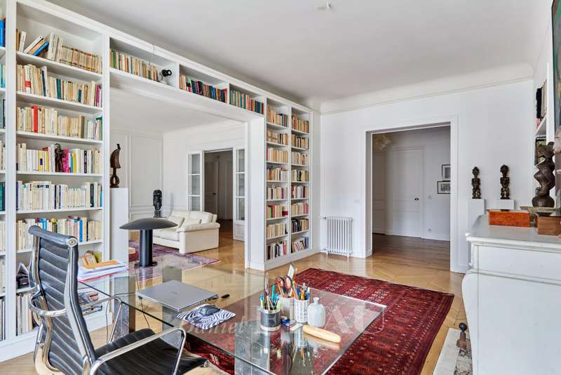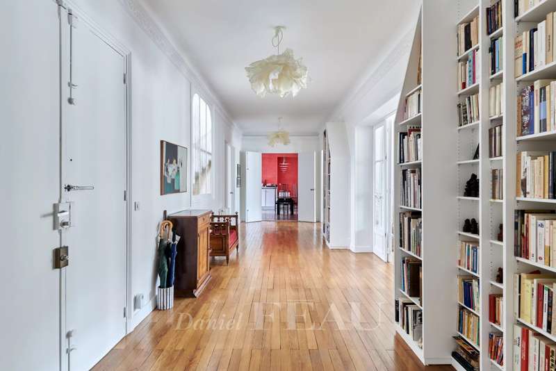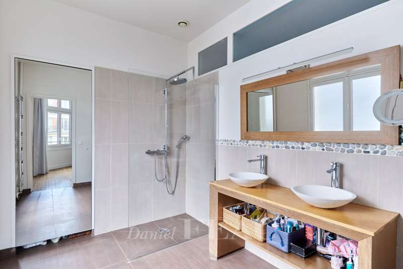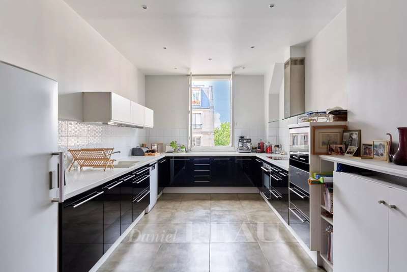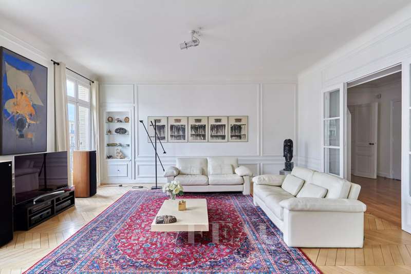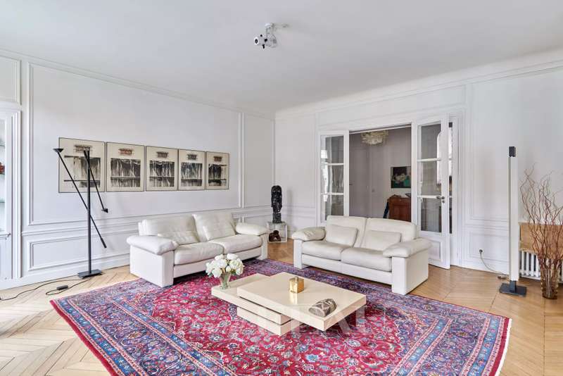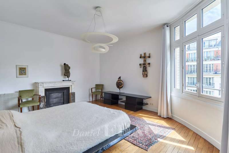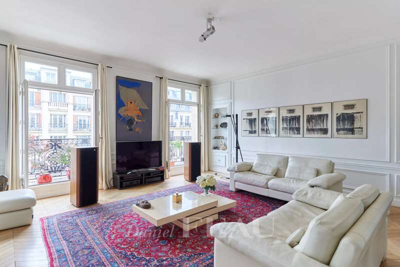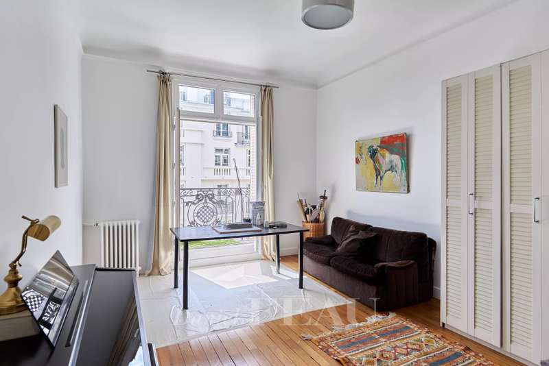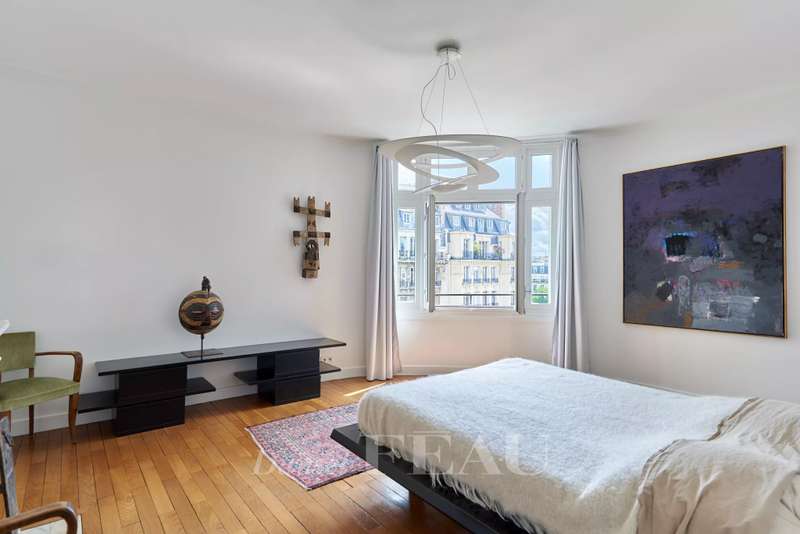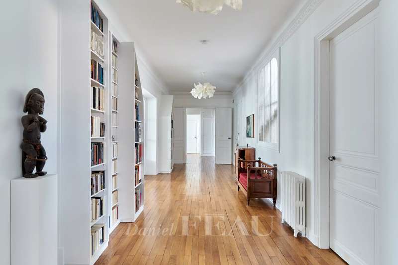 This 248 sqm corner apartment bathed in sunshine is on the 5th floor of a fine 1930s building with a lift located near Saint Odile Church. Triple-facing and enjoying open views, it includes an entrance hall, a double living/reception room opening onto a south-east facing continuous balcony, a spacious kitchen with dining facilities, four bedrooms including a master suite with a shower room, a bathroom, a shower room, a utility room and two separate wc. Ample fitted storage space. With a double cellar.
