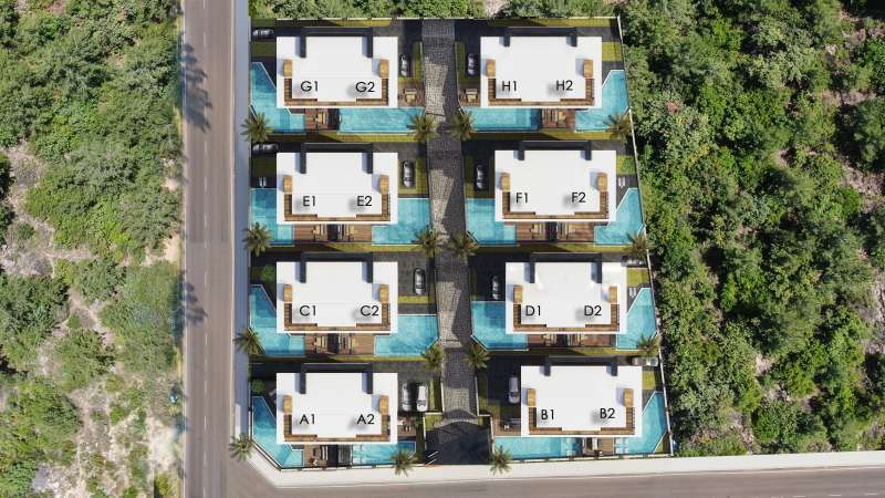 The houses are located on a complex consisting of 16 3-storey semi-detached houses. Each house has its own private pool.