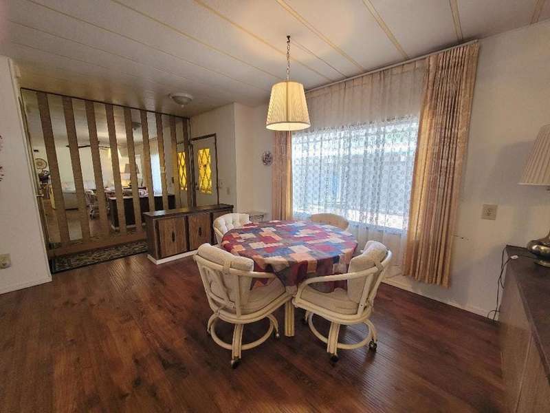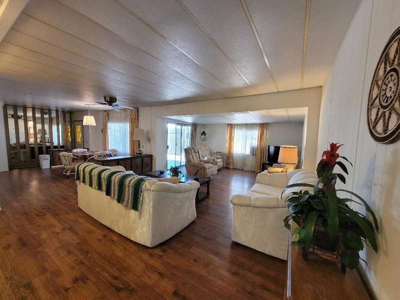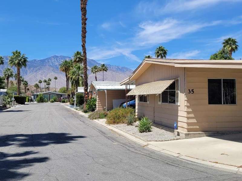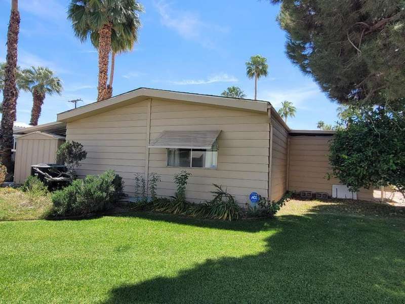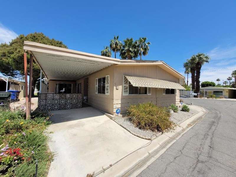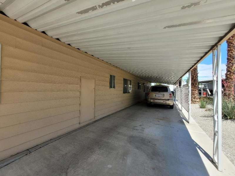 This spacious home features 3 bedrooms and 2 full baths. A family room addition is open to the main living area. This is an open concept floor plan. The dining area has a built in hutch and is open to the living room. A wonderful floor plan for entertaining your friends and family. The flooring is upgraded with wood style laminate. Good bedroom separation with the guest bedrooms opposite the master suite. Interior laundry features a full-size washer/dryer. Turnkey furnished. Features an evaporative cooler keep the cooling costs down. The private covered patio offers views of the surrounding mountains. Plenty of space to expand the patio. The carport will accommodate two cars, and features a storage shed. The roof was replaced 6-7 years ago. The rear of the home backs up to a greenbelt. Located in a quiet interior location away from traffic. The monthly space fee includes an active Clubhouse, 3 pools, greenbelts, water, trash and sewer. The space rent for this property is $695.99/month. This is not a ground lease. The complex is conveniently located near the airport, shopping, restaurants, golf and entertainment. Palm Springs View Estates is a 55 plus community with rent control. Buyers must have park approval to close escrow. Buyer must verify income of 3X the amount of space rent. Buyers to verify lease terms, and park rules and regulations.