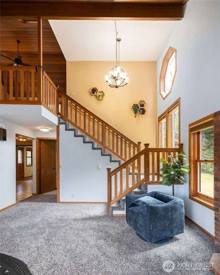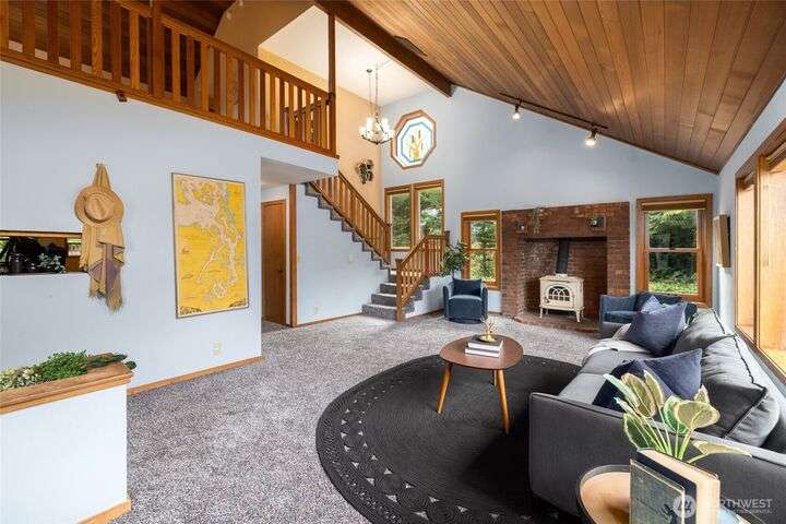 This is any outdoor enthusiast's dream home. Beautiful nature-inspired architecture with a spacious yard, garage & 3-bay shop! Incredible amount of versatility, with an expansive loft for a primary suite AND a ground floor primary suite, + 2 other bedrooms (technically a 3-bd because of septic). Second livingroom area & bd could easily be made into a private living space. Expansive yard & patio on a large lot creates a private oasis or great entertaining. This area is often considered to be living on the forest edge because of its easy access to Whatcom Falls Park - with pristine swimming, hiking and waterfalls, as well as the world-renowned Mtn. biking at Galbraith Mountain.