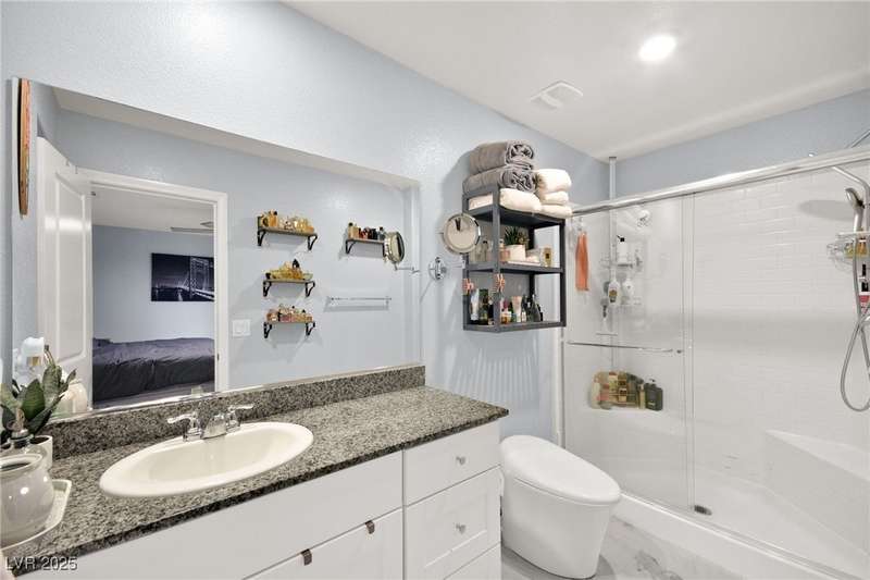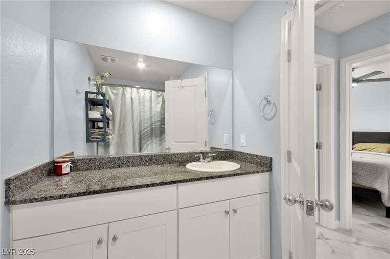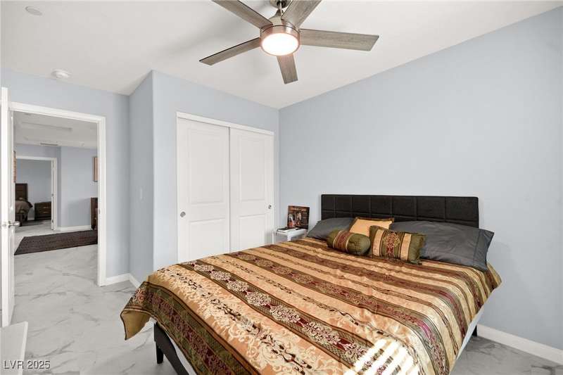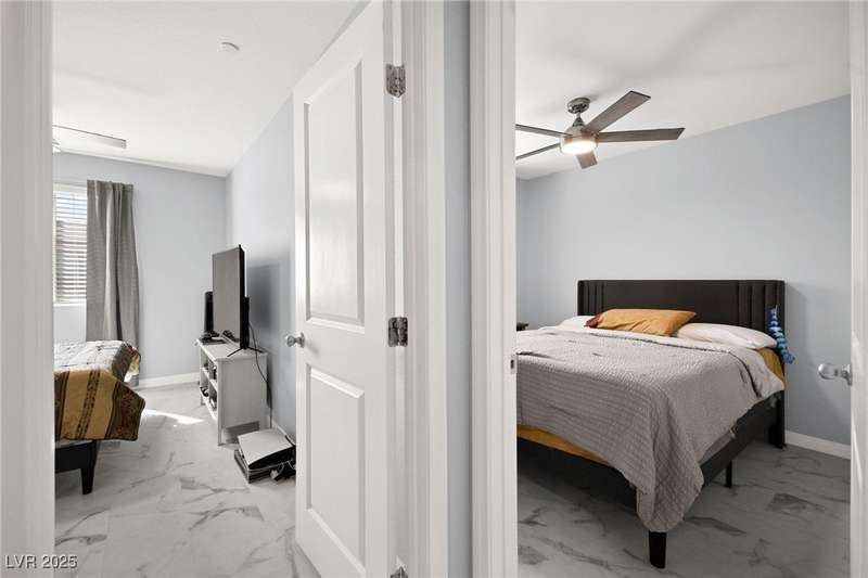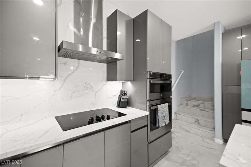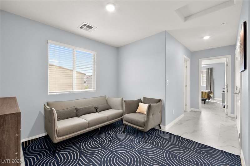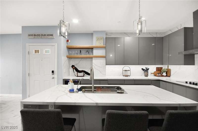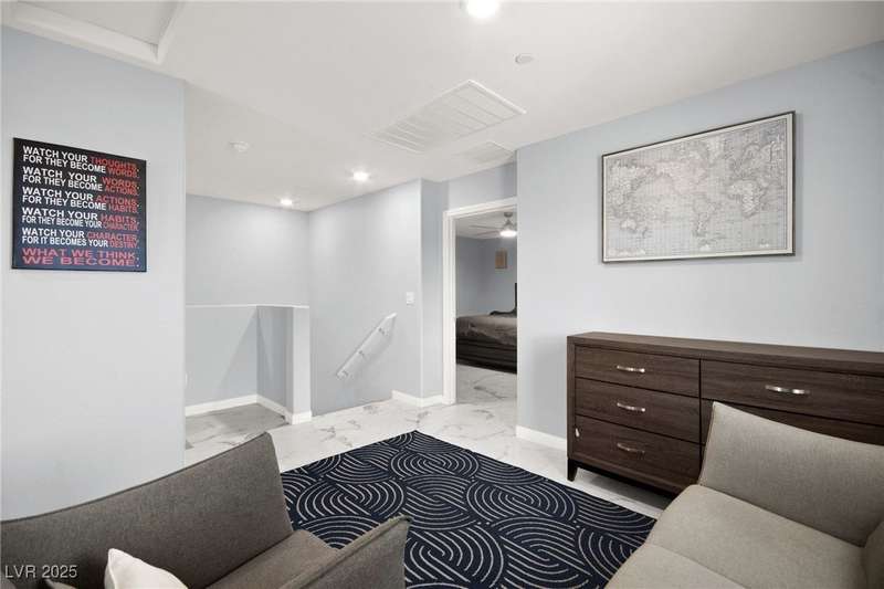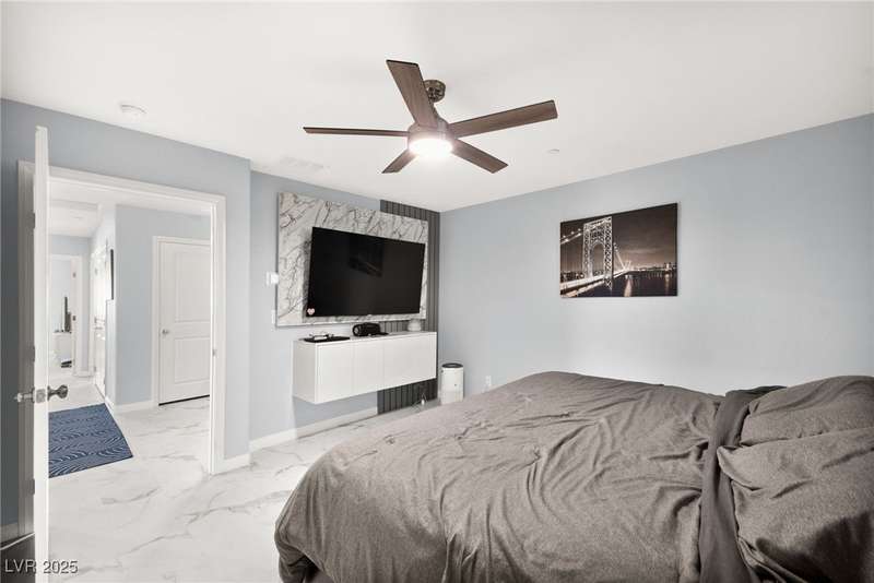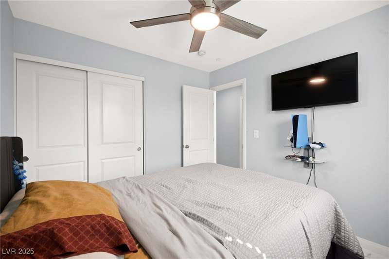A masterfully upgraded and transformed 3 bed, 2 bath townhome. The luxury kitchen includes all new appliances and range hood, custom cabinetry with pullout drawers and a spice rack, a drink fridge, a luxury sink with a glass cleaner and a specific fruit/vegetable washer, quartz countertops with a waterfall edge and a matching quartz backsplash. The living room features a custom built-in entertainment center with shelving, storage and LED lighting. The primary bedroom includes an LED backlit accent wall behind the TV. Enjoy ceiling fans throughout, including in the living room and each bedroom. All flooring has been upgraded to a tile-like LVP. There’s no carpet at all in the home. The loft has recently been turned into a home office with built-in desks and storage. The two-car garage features storage racks, a water softener and a tankless water heater. Other upgrades include a motorized shade over the downstairs sliding door, a reverse osmosis system and a walk-in pantry.