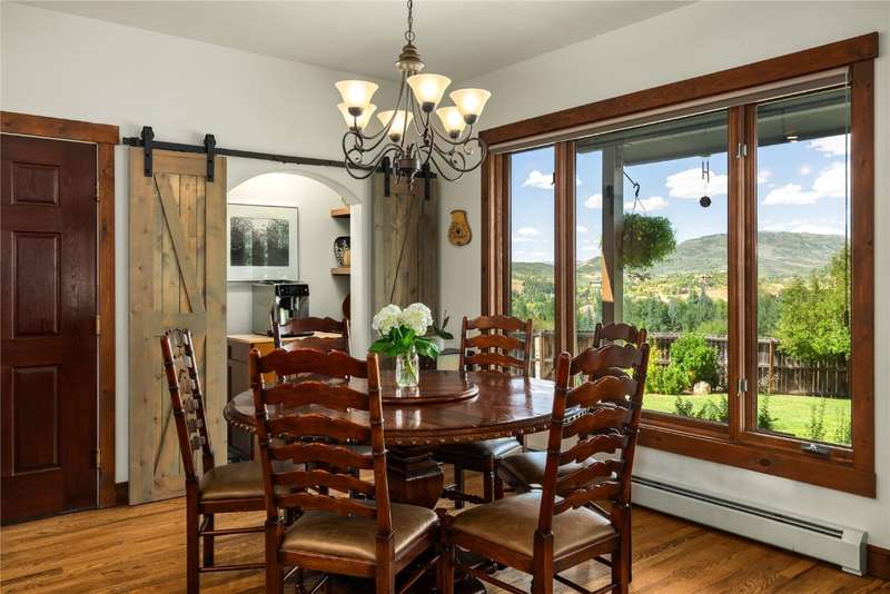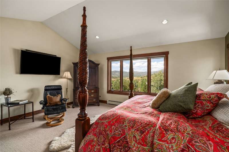 Nestled on a cul-de-sac street in the sought after Fish Creek neighborhood, this immaculate 5 bedroom (or 4 + office) home sits on a nearly half-acre less than 2 minutes to downtown Steamboat. Elevated above town, the property captures sweeping views into Strawberry Park, Buffalo Pass, Rocky Peak and the surrounding mountains. The yard is deluxe! Truly special with a lush, fenced setting and wraparound lawn, mature aspens and pines for privacy, and thoughtfully designed landscaping with patio and hot tub. Multiple outdoor living spaces—including shaded front and back porches, an expansive exposed aggregate patio, firepit, ambient lighting, and charming hand-built outbuilding. The interior of the home has also been meticulously maintained and offers a warm and welcoming layout. The kitchen with a gas stove opens to a dining area and living room oriented to take full advantage of the views, complemented by wood floors and a cozy stone fireplace. A main-level office (or 5th bedroom) and steam shower bathroom add convenience and comfort. Upstairs, the spacious primary suite boasts vaulted ceilings, expansive views, and a lovely five-piece bath, & 2 add’l bedrooms and the expansive bunk room could accommodate an entire family or group of friends. The lower level is designed for fun and function with a second family room, bar, game room, stone fireplace and exercise areas, plus a full bathroom and laundry room. A generous 3 car garage completes the property with additional storage, sink, refrigerator and built-in cabinetry The Fish Creek area of Steamboat is highly sought-after for good reason, with close access to schools, restaurants and stores, the Steamboat Ski Area, nearby trails into downtown’s fun and vibrant social scene, and extensive trail access to spots like Spring Creek Trail and Fish Creek Falls Trail, leading to National Forest. This home seamlessly blends location, comfort, and lifestyle in one of Steamboat’s most desirable settings.