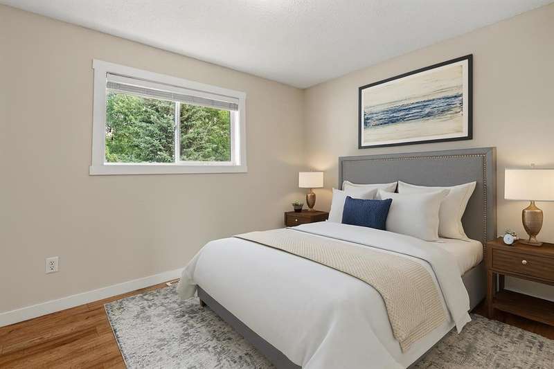 Hello value! A recently upgraded + rejuvenated family home occupying nearly 2,000 sqft of developed space. Step foot inside and take in the dramatic vaulted ceilings, bright open concept floor plan, large windows + wood flooring throughout. Enjoy fresh paint and dozens of touch-ups completed around this property in the recent weeks. This spacious 3 bedroom + 3 bathroom split level layout is perfect for young families or empty nesters. The amalgamated kitchen + dining areas create an atmosphere that is easy to host guests and entertain friends. The clean white kitchen shines with stainless steel appliances, subway tile backsplash, double sink and a moveable breakfast bar island. Migrate over to the living area, next to the bay windows, to unwind with your favourite show after a long day. Retreat up to the primary bedroom, equipped with a full 4 piece en-suite bathroom. The two additional bedrooms have access to the guest bathroom just down the hall. On the lower level you will find a massive rec room, ideal for family movie + game nights, a spot for the kids to take over and play or even an amazing home gym set up. You also have access to a 3 piece bathroom along with laundry + storage. Step out to the elevated patio and unwind a beverage while tending to the BBQ. A lush + inviting backyard featuring garden beds and a designated fire pit area. The double garage + laneway parking pad, suitable for an extra two vehicles [or RV!], make it a breeze for having guests over. A location close to all of your daily amenities.