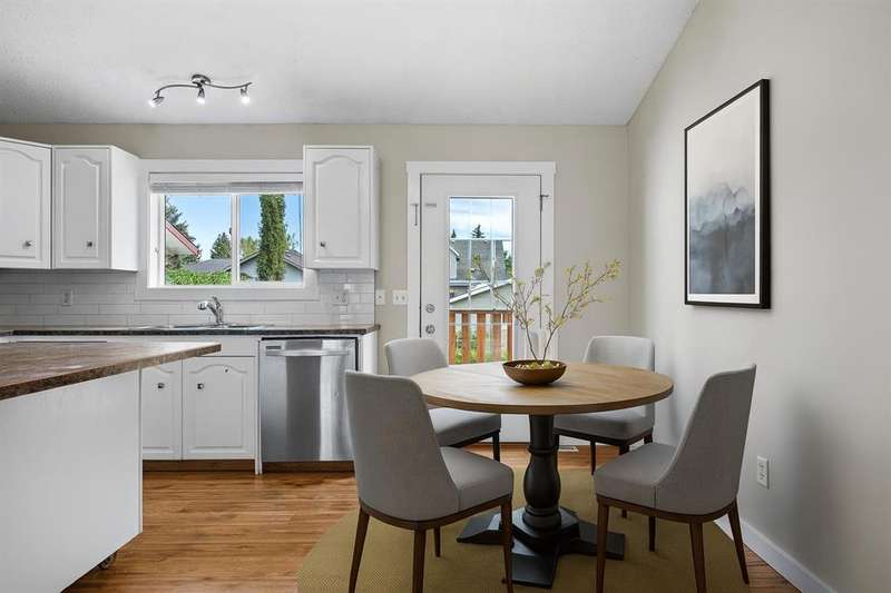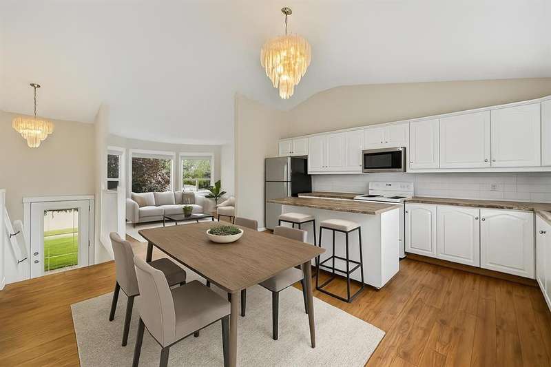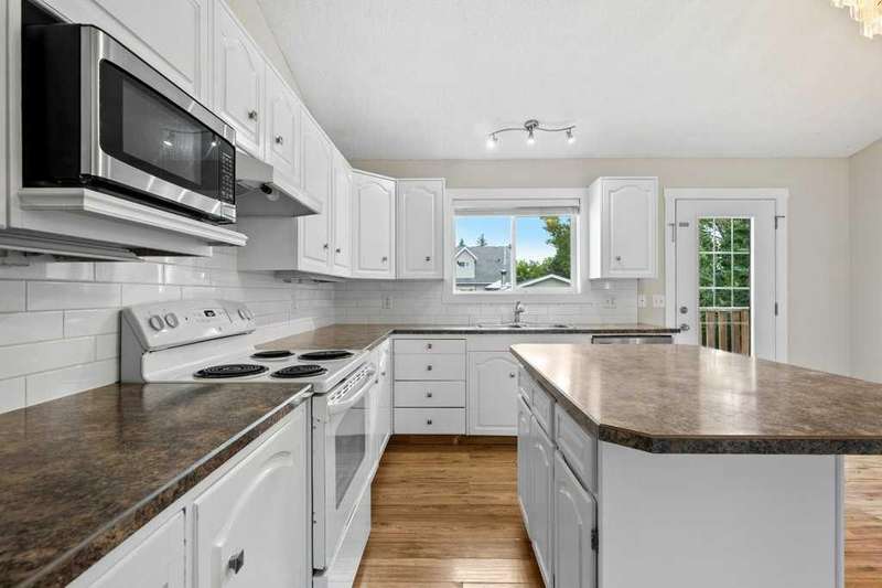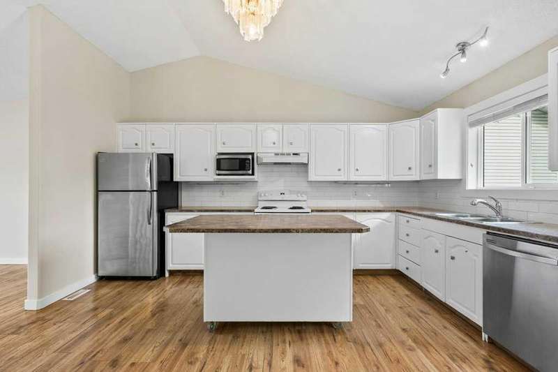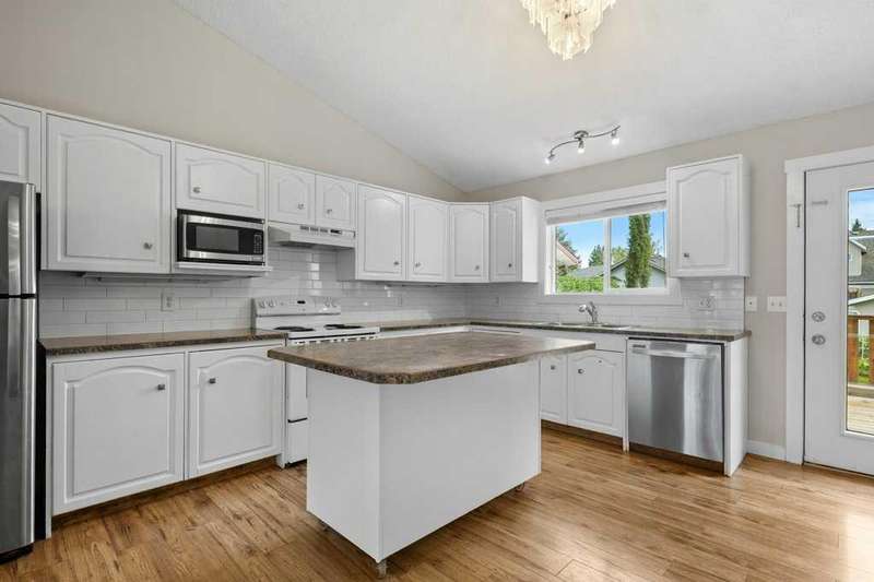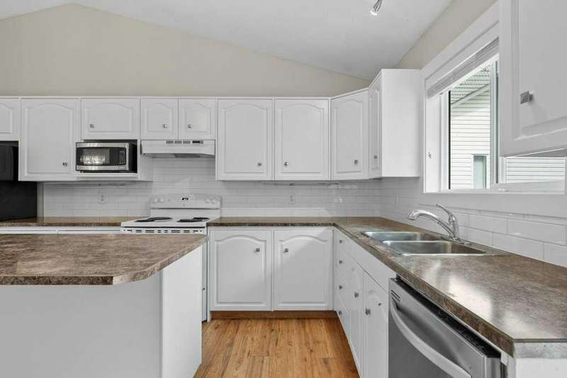 Hello value! A recently upgraded + rejuvenated family home occupying nearly 2,000 sqft of developed space. Step foot inside and take in the dramatic vaulted ceilings, bright open concept floor plan, large windows + wood flooring throughout. Enjoy fresh paint and dozens of touch-ups completed around this property in the recent weeks. This spacious 3 bedroom + 3 bathroom split level layout is perfect for young families or empty nesters. The amalgamated kitchen + dining areas create an atmosphere that is easy to host guests and entertain friends. The clean white kitchen shines with stainless steel appliances, subway tile backsplash, double sink and a moveable breakfast bar island. Migrate over to the living area, next to the bay windows, to unwind with your favourite show after a long day. Retreat up to the primary bedroom, equipped with a full 4 piece en-suite bathroom. The two additional bedrooms have access to the guest bathroom just down the hall. On the lower level you will find a massive rec room, ideal for family movie + game nights, a spot for the kids to take over and play or even an amazing home gym set up. You also have access to a 3 piece bathroom along with laundry + storage. Step out to the elevated patio and unwind a beverage while tending to the BBQ. A lush + inviting backyard featuring garden beds and a designated fire pit area. The double garage + laneway parking pad, suitable for an extra two vehicles [or RV!], make it a breeze for having guests over. A location close to all of your daily amenities.
