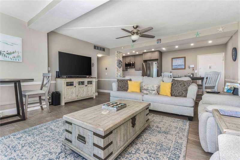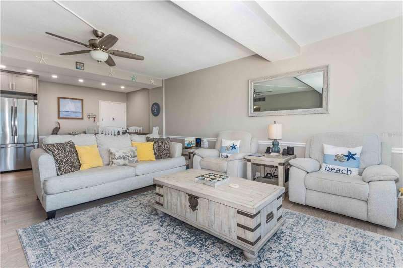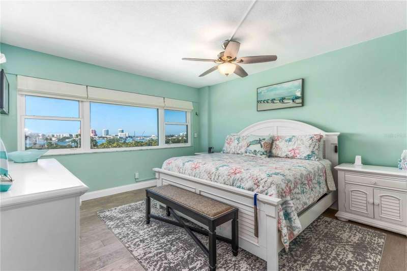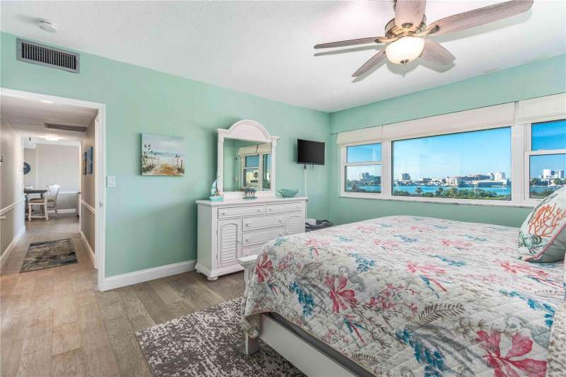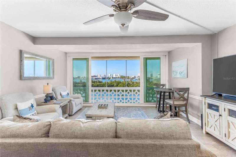 Experience effortless island living in this spacious 2-bedroom, 2-bath co-op residence on Island Estates, offering 1,295 sq. ft. of comfortable waterfront living and breathtaking panoramic views of Clearwater Beach. Sunlight fills the home through large windows that frame sweeping water vistas and stunning sunsets, while both bedrooms provide generous space and serene views. Life at Horizon House is truly worry-free—the monthly fee covers nearly everything, including electricity, water, sewer, trash, high-speed internet, basic cable, pest control, A/C maintenance and repair, water heater service, and building upkeep. The community is impeccably managed with a full-time onsite manager, weekday building attendant, secure FOB entry, and well-funded reserves. This amenity-rich building offers something for everyone: a geo-thermal heated pool cooled in summer and warmed in winter, a fishing pier with cleaning station, boat slips on a first-come, first-served basis, grilling stations, bike storage, a recreation room with kitchen, shuffleboard, a modern fitness center, free laundry rooms on every floor, and private storage closets for each unit. Residents also enjoy a beautifully updated lobby with comfortable seating, a lending library, a secure package room, and a spacious multi-purpose meeting room. A variety of clubs, social activities, and volunteer committees foster a warm, active community. Additional conveniences include plenty of open parking, optional covered or garage parking for an additional fee, storm shutters, and easy access to Island Way Grill directly across the street. You’ll love being just minutes from Clearwater Beach, Pier 60, world-class dining and entertainment, and within walking distance to Publix, the Clearwater Marine Aquarium, and the Jolley Trolley line. Tampa International and St. Pete–Clearwater airports are both under 40 minutes away.