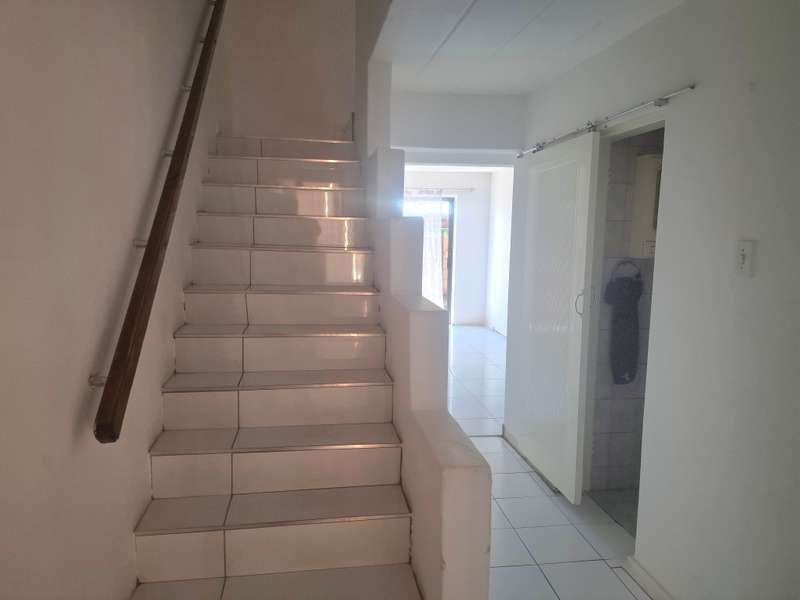 A Lovely newly renovated Duplex property in secure complex with ample parking space for visitors and close to all amenities is here. Property is tiled throughout. ITS stylish, neat and spacious. UPSTAIRS: Consist of 3 well sized bedrooms with build in cupboards one with a wooden deck, at 2 bedrooms there is wooden stairs for access to garden area outside. 1 Full bathroom with a bath, basin, shower and toilet. DOWN STAIRS: 2 Well size reception areas, where one opens up onto a small private garden with a lapa and build in braai. A Study or TV room extra for those working days. Fitted kitchen with hob, extractor fan, under counter oven, loads of packing space and laundry facilities. Separate guest toilet. Pre paid power and water. Great security. Remote access into complex. Lock up carport for 1 car. DONT MISS THIS GREAT PROPERTY!!! ALL REASONABLE OFFERS WILL BE CONSIDERED!!!