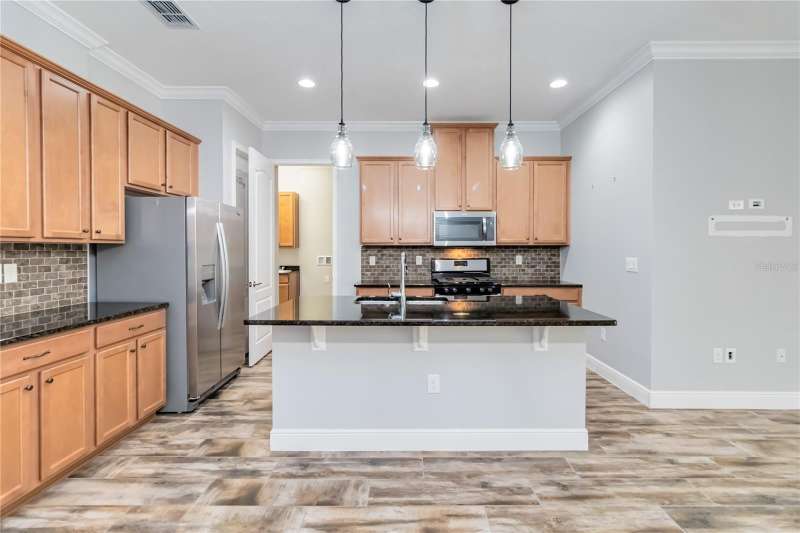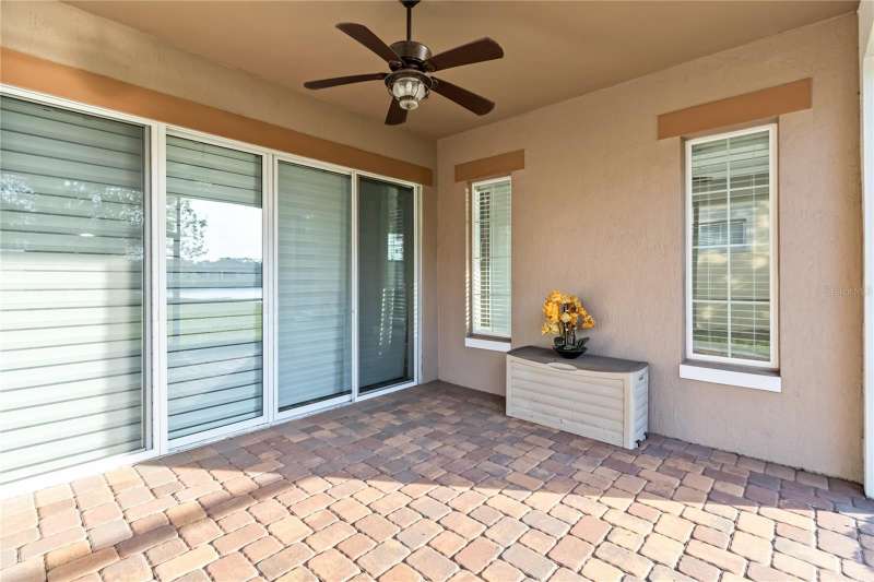 Welcome home to this Absolutely Beautiful Amelia floor plan located in the well sought after Gated 55+ Active Del Webb Twin Lakes community. With a water view. Walk into the breathtaking property featuring stunning custom glass insert in the front door, wood plank tile flooring and custom crown molding throughout. Upgraded kitchen Cabinets with custom molding, subway tile backsplash, Island features custom subway tiles, walk-in pantry, custom granite edged countertops, pendant lights, and chandelier. The living room features custom blinds. Sliding glass doors lead to screened in Lanai with custom ceiling fan & light to enjoy your morning coffee and view of the water. Master bedroom with blinds, trey ceiling, and ceiling fan. The master bedroom bathroom features custom glass doors, diamond shaped flooring in the shower, and custom tiling. Double vanity quartz edged countertops, brush Nickel hardware. Large, carpeted walk-in closet. Laundry room tailored with upgraded upper cabinets as well as lower cabinets for great storage, tile flooring, and beautiful granite countertops. Guest bedroom ceiling fan with light and faux wood blinds. Amenities include a Resort style pool, Lap Pool and 3rd pool on the carriage house side, 20,000 square foot Gorgeous Clubhouse, State of the art Fitness Center, Flex room, Tennis Courts, Putting Green, Walking Trails, Pickle Ball Court, Fishing, and Pontoon Boats and Jon boat to use on Live Oak Lake! The community has many active and socializing activities. View today!