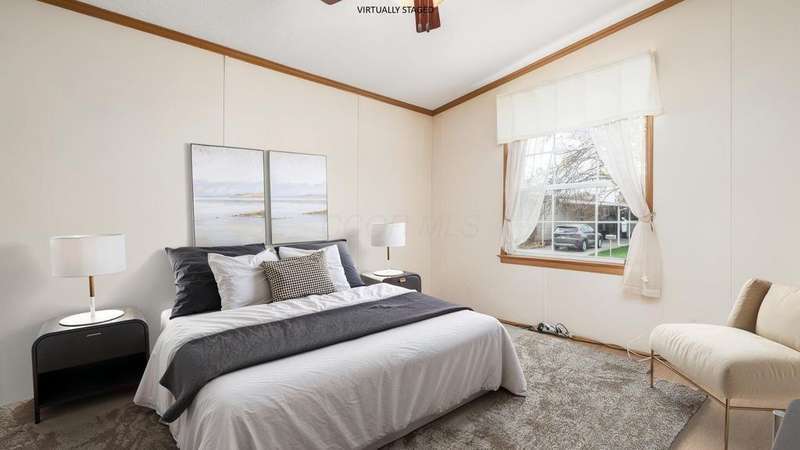 Welcome to this inviting double-wide home in Enchanted Acres, a 55+ community known for its peaceful setting and welcoming neighbors. Built in 2003 and offering 1,248 sq ft, this home provides a comfortable, low-maintenance lifestyle with the space you need to relax and enjoy each day.Inside, you'll find a bright living area that connects easily to the kitchen and dining space. It's a simple, open layout that works well whether you're hosting a friend for coffee or settling in for a quiet evening. The kitchen offers plenty of cabinet and counter room, keeping everything within reach.The primary bedroom sits on one side of the home for added privacy and includes its own full bathroom. Two additional bedrooms give you flexibility; use them for guests, a hobby room, or extra storage. A second full bath is conveniently placed for visitors.Living in Enchanted Acres means more than just a home?you also have access to the clubhouse, where residents gather for events, activities, and social time. It's a great place to stay connected and enjoy a friendly neighborhood environment.Set in the heart of Obetz, you're close to everyday essentials, parks, and major routes while enjoying the benefits of a quiet 55+ community.