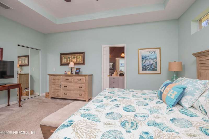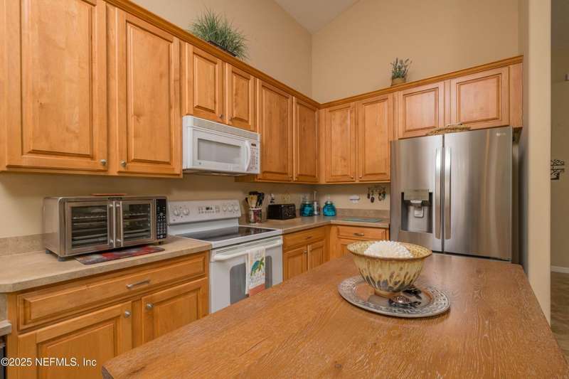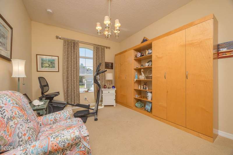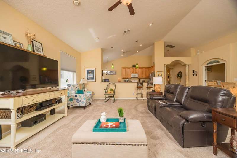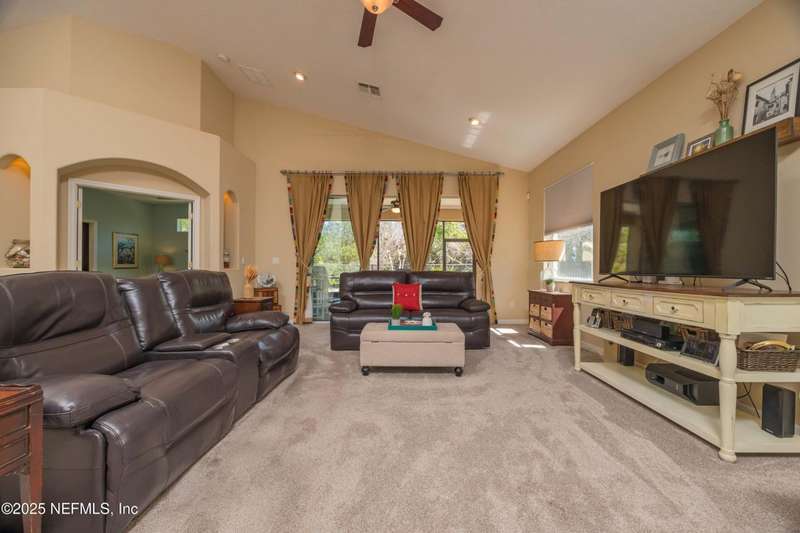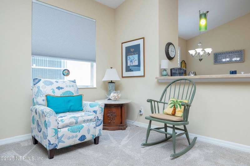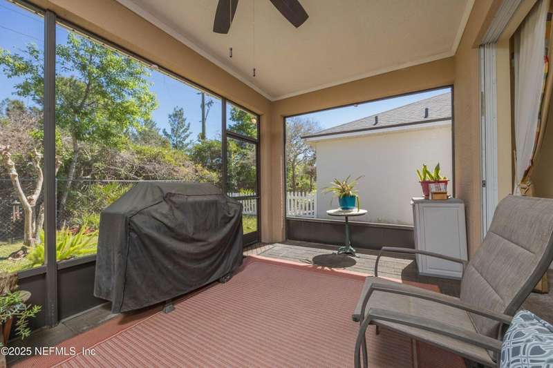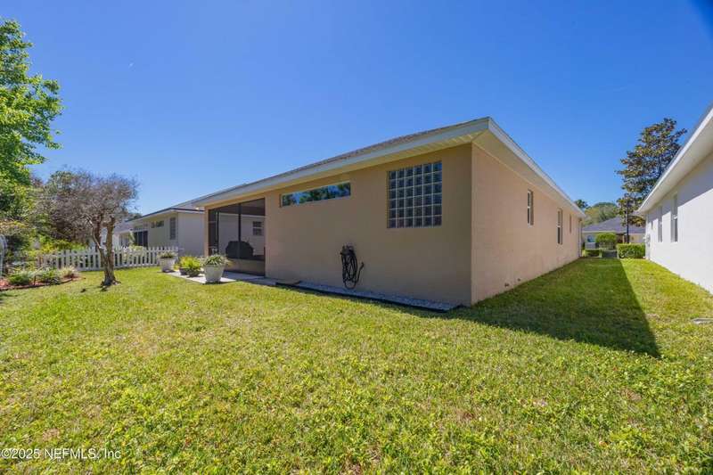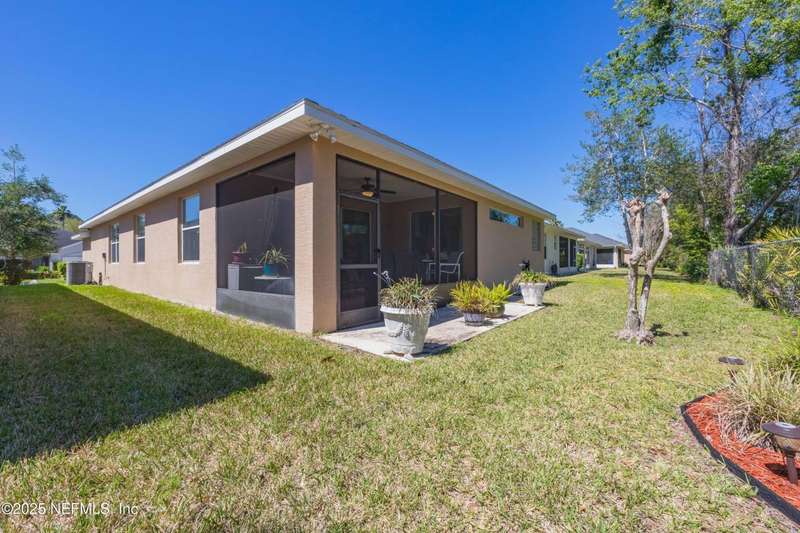 LOW MAINTENANCE, LOW PRICE & LOW HOA FEE (LAWN CARE INCLUDED) MAKES THIS SPACIOUS CONCRETE BLOCK 3BR/2BA A PERFECT COMBINATION FOR A LAID BACK LIFESTYLE! Ideal as a main residence or as a vacation home. Enter the wide, tall foyer to a roomy eat in kitchen with lots of cabinets, counters & a built in desk! Formal dining room & large living room with high ceilings & lots of light lead out to 17x10 screened lanai overlooking private treed yard backing to a greenbelt/preserve. At the back of the home is the spacious owner suite with huge walk in closet, high eyebrow window & sliders leading to screened lanai. Owner bathroom includes double vanity, garden tub & a separate beautifully tiled shower. 2nd bedroom includes big walk in closet & Murphy bed. Across the hall is the 3rd bedroom with 2nd bathroom, plus washer & dryer closet in between. Community pool & tennis. Less than 5 min to shopping & less than 15 min to the beach!