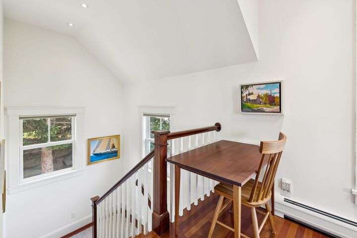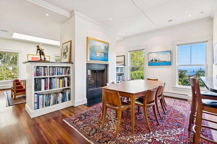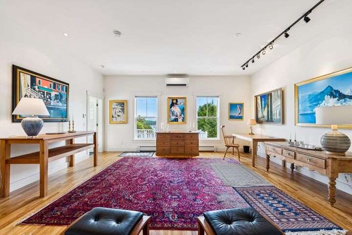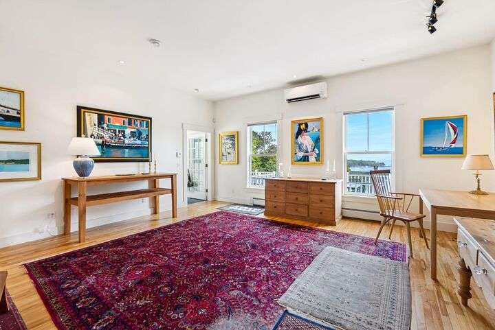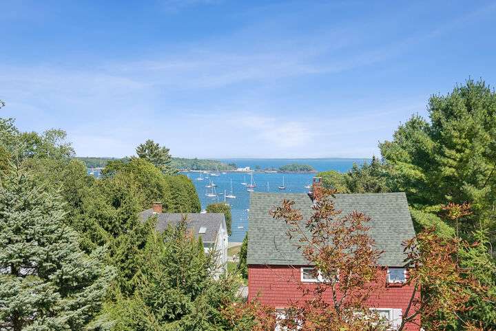 Perched above Camden harbor, this exceptional property is a rare blend of elegance, inspiration, and coastal luxury. Designed with an 'upside down' layout, the main living spaces--including the chef's kitchen, dining, and living rooms--are thoughtfully placed on the upper level to fully embrace the stunning ocean and mountain views. Refined spaces are perfect for entertaining, and the spacious deck allows you to take in ocean breezes year round. An elevator ensures effortless access between floors, while a whole house generator keeps you comfortable no matter the weather. The large studio space has great potential as a media room or grand home office. On the ground level, serene bedrooms and home office space allow for flexible use of the home. With harbor views, refined finishes, and a prime location just moments from downtown conveniences, this tranquil coastal retreat is a must-see for those seeking comfort, beauty, and ease in their next chapter.