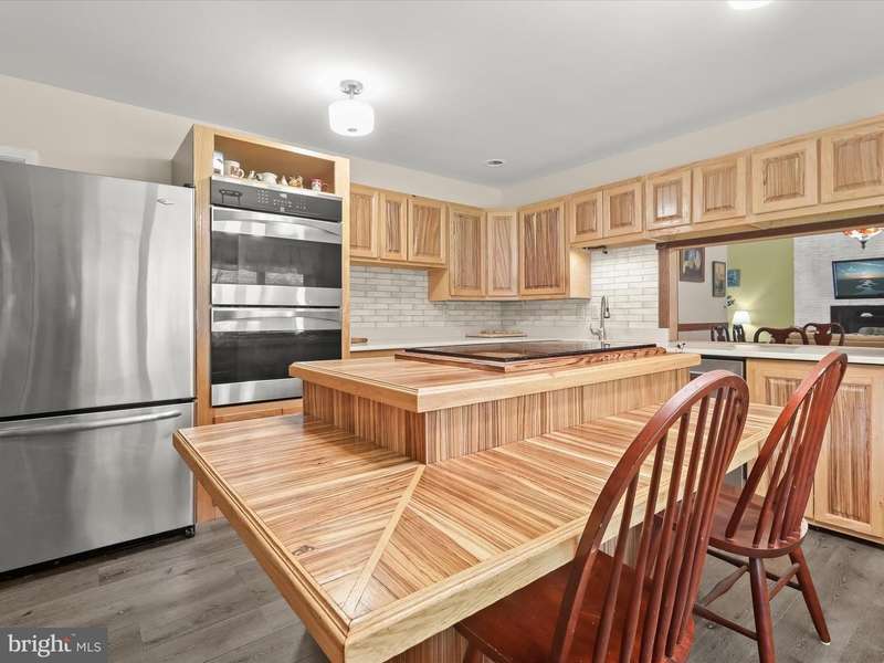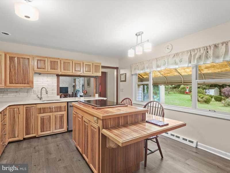 Introducing this three bedroom, two and a half bathroom home set on a peaceful 0.57-acre lot in Kingsville. Exceptionally manicured landscaping and a welcoming covered front porch create a warm first impression. Inside, the spacious living room features hardwood floors, a soaring cathedral ceiling, and a floor-to-ceiling brick surround for the pellet stove. The adjacent dining room is perfect for meals, while sliding glass doors lead to the sunroom overlooking the backyard, complete with a cozy wood-burning fireplace. Prepare your favorite meals in the eat-in kitchen that showcases custom-built Zebrawood and Oak cabinets, Silestone countertops, a tile backsplash, a center island with breakfast bar, and stainless steel appliances including an induction cooktop and double wall ovens. A half bathroom, garage, and access to the basement complete this side of the home. Down the hall, the primary bedroom offers an ensuite bathroom with a walk-in shower and floor-to-ceiling tile. Two additional bedrooms and a second full bathroom with a roll-in shower complete the main level. Downstairs, the unfinished lower level provides endless possibilities for future living space. Step outside to an expansive backyard designed for both relaxation and entertaining, with landscaped grounds, a fire pit, storage shed, and underground electric fence for pets. Recent updates include a new water heater, dishwasher, roof, replaced windows, and more. Leased solar panels further enhance the home's energy efficiency.