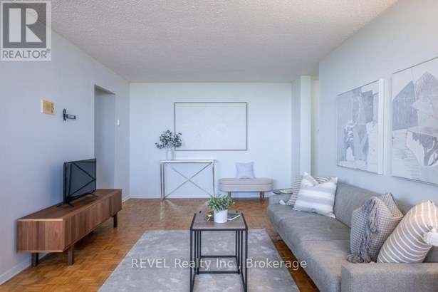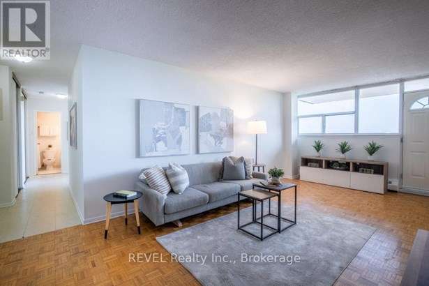 The building at 215 Glenridge has visitor parking, inground pool, bright laundry room, party room and an inviting entry. Major components of the building have been updated. Condo fee includes all utilities except internet and parking fee. Large balcony is approx. 19' x 5' with wonderful views overlooking Old Glenridge. The suite has 2 spacious bedrooms, one 4PC bath, open style living room and dining area that opens to the balcony. The kitchen has been updated and includes Fridge and Stove. The fresh coat of paint throughout provides a very bright, clean and inviting suite. Currently the inside parking spot #56 is assigned to Suite 1104. Bell Fibe internet available. Great location; close to the local plaza, downtown St Catharines, Pen Centre shopping center, and just minutes up the hill to Brock University.