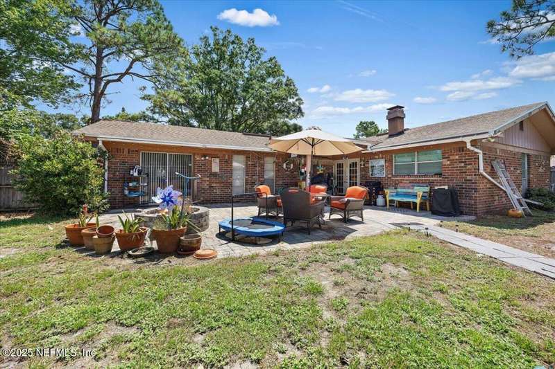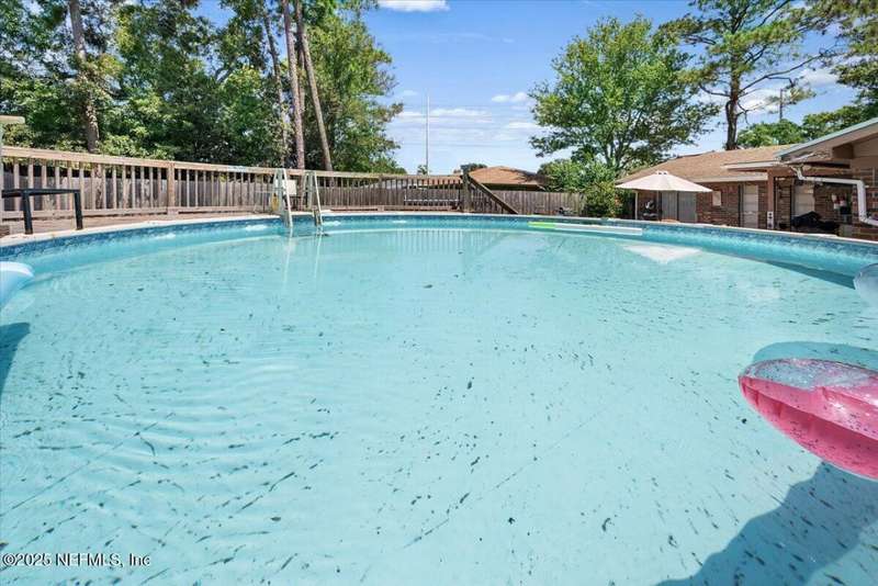 Great brick rambler on a huge lot on a small, quiet cul-de-sac right off San Pablo Rd. Close to A rated Alimacani Elementary and River City Science Academy. Short drive to beaches and good shopping. Good plan with living and dining room, kitchen with breakfast bar and generous family room with fireplace, with French doors to covered patio and fenced backyard with newer, above ground pool and firepit. Split bedrooms. 2nd and 3rd bedroom with walk in closets. Primary with door to backyard, shower and 2 closets, 1 walk in. This home is waiting for new owners to update or renovate.