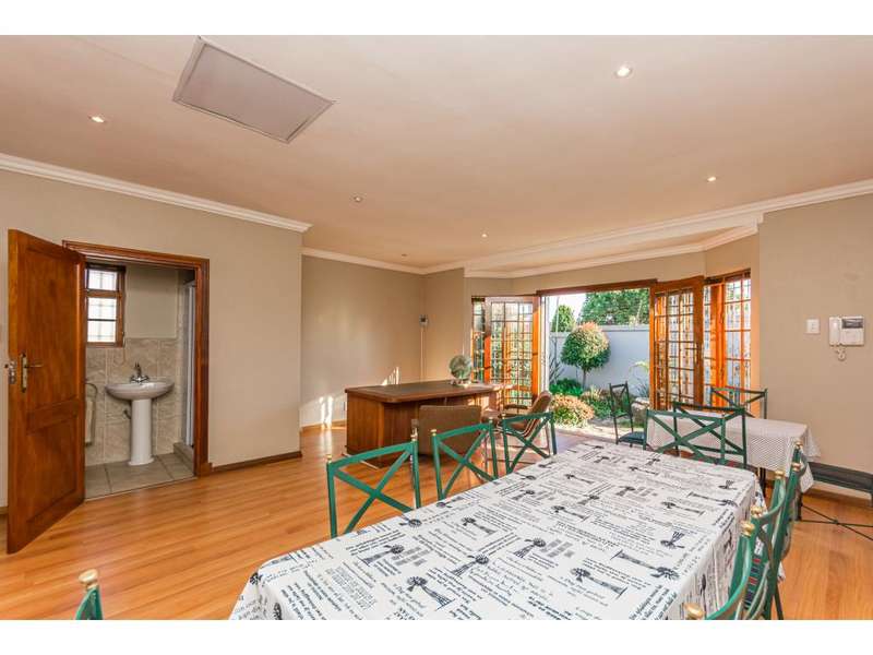 Charming 3-Bedroom Townhouse with Spacious Garden & Separate Entertainment Welcome to this stunning townhouse nestled in the heart of Krugersdorp North! Offering the perfect blend of charm, space, and functionality, this home is ideal for families or those seeking comfort with added security. Property Features: Spacious Garden & Entertainment Area ?Çô As you step onto the property, you?ÇÖre greeted by a large, well-maintained garden leading to a separate entertainment area. This space, equipped with a built-in braai, toilet, shower, and stacking doors opening onto the garden, can effortlessly be converted into a flatlet. The home boasts beautiful wooden floors and elegant living spaces throughout, an open-plan lounge, a separate TV room with a cozy fireplace, and a dedicated dining room for entertaining guests. 3 Bedrooms & 3 Bathrooms ?Çô All bedrooms come with built-in cupboards. Two of the bedrooms share a full bathroom with a shower and bath, while the main bedroom features a private ensuite for added convenience. There?ÇÖs also a study that can easily be converted into a fourth bedroom. This Gourmet Kitchen is a chef?ÇÖs dream with solid wooden cupboards, granite countertops, a gas stove, a walk-in pantry, and a separate scullery with ample appliance space. A double automated garage provides space for four cars, and there?ÇÖs a separate servant?ÇÖs quarter with a shower and toilet. Security & Complex Living ?Çô This townhouse is part of a well-secured complex with an electric fence. The unit itself has its own entrance, alarm system, and security beams for peace of mind. This gem offers a perfect balance of privacy, space, and security. Don?ÇÖt miss out, contact us today to arrange a viewing!