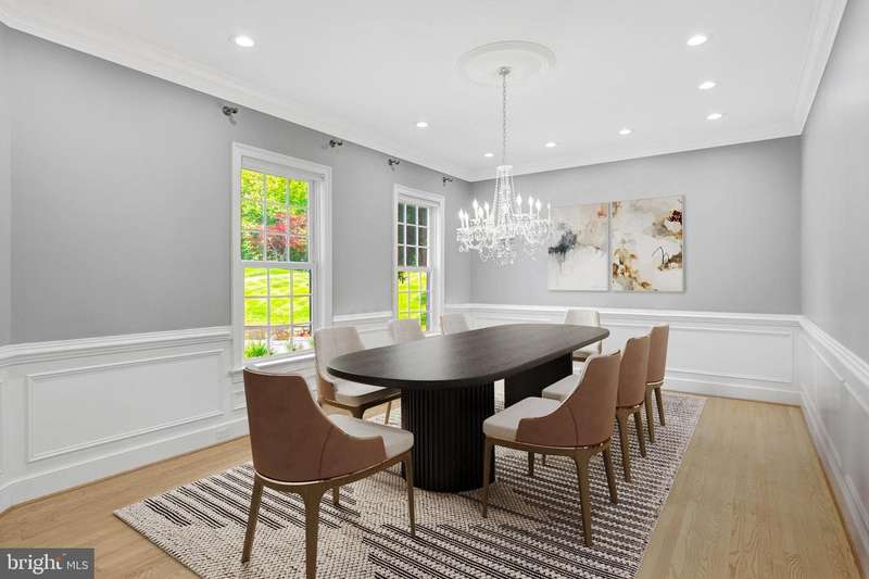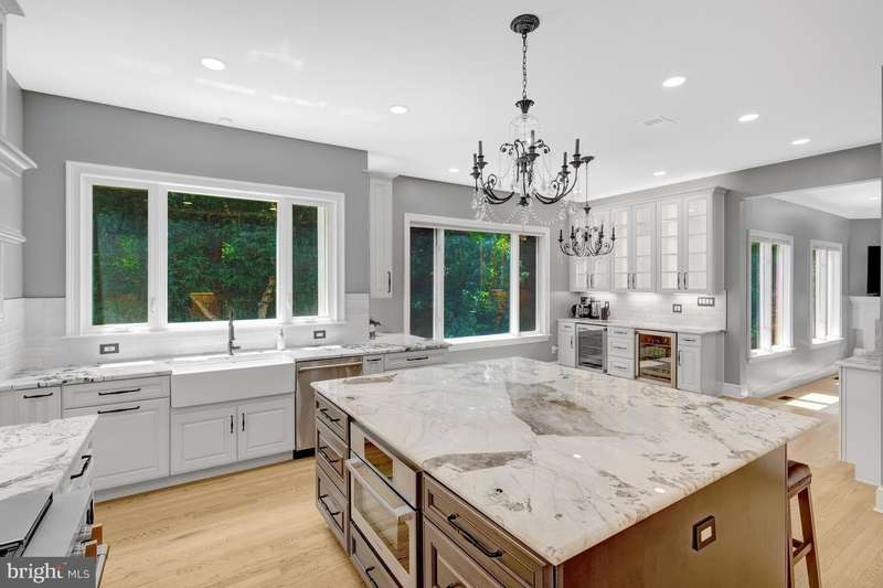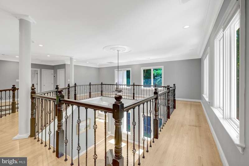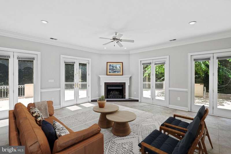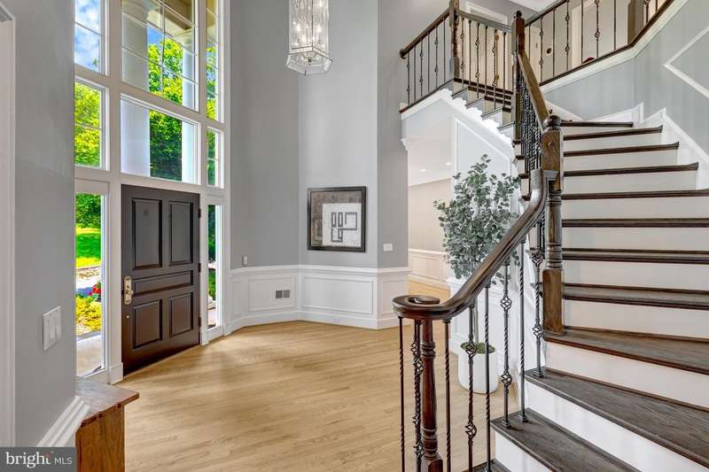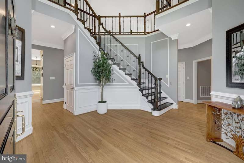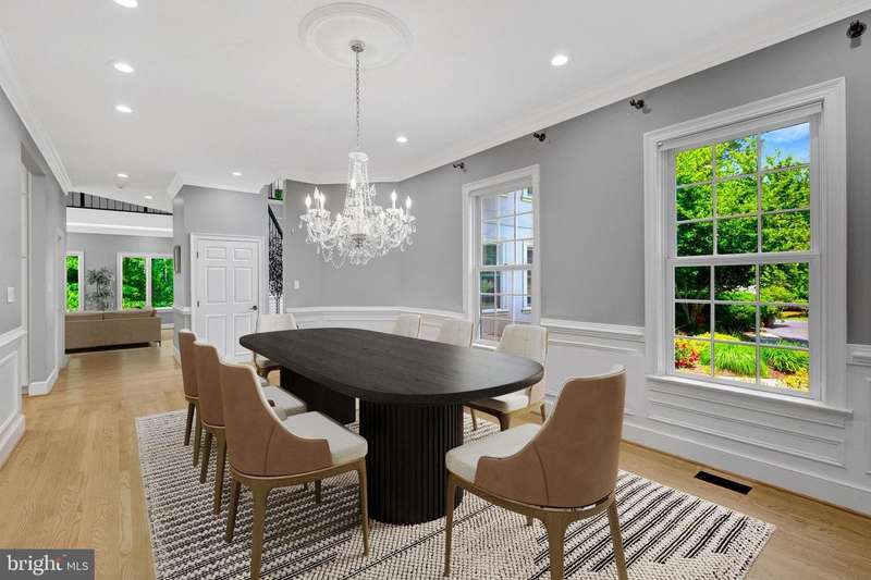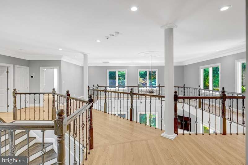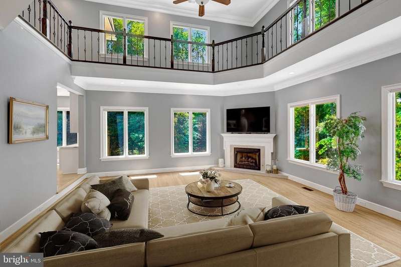 Welcome to this unique V-shaped residence, framed by four stately columns and a soaring artistic Palladian window. This distinguished home, offering 9 bedrooms and 8 ½ baths and providing over 9,000 sq ft of living space, is located in one of the most desired and lovely neighborhoods on the east side of Great Falls; the proximity to the village center, Riverbend Country Club, and the national and regional parks can't be beat. An elegant octagonal foyer sets the tone for the home's refined and thoughtful design. The main level features beautifully refinished hardwood floors and flows seamlessly into a remodeled gourmet kitchen and a dramatic two-story family room, which is framed above by a striking gallery-style promenade. Expansive picture windows throughout flood the home with natural light and offer sweeping views of the surrounding woodlands. The main level also hosts the spacious owner's suite-a true retreat-featuring a recently renovated bathroom with luxurious, spa-quality finishes. Upstairs, you'll find four generously sized ensuite bedrooms, each offering comfort and privacy. The fully finished lower level adds even more versatility, with four additional bedrooms, a full kitchen, and ample space for guests, multi-generational living, or extended entertaining. Outdoors, a private path winds through the backyard, providing direct access to the scenic Potomac River-a rare and coveted amenity.