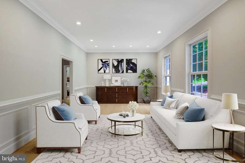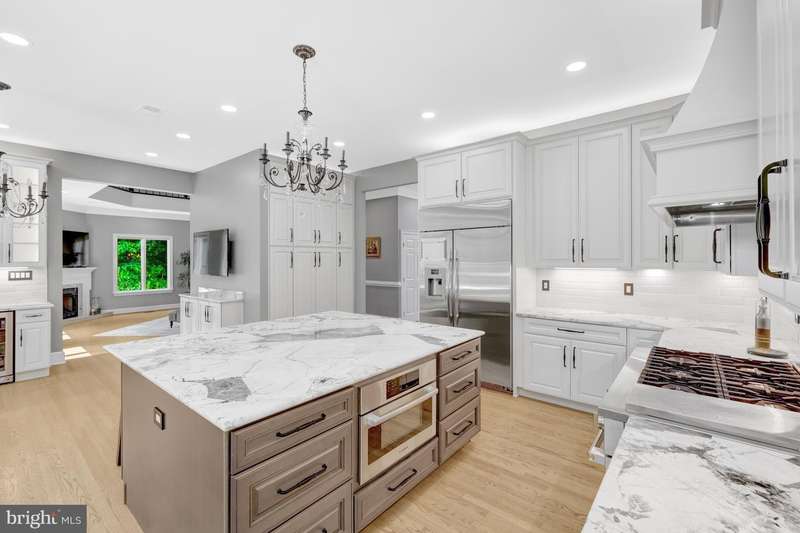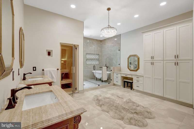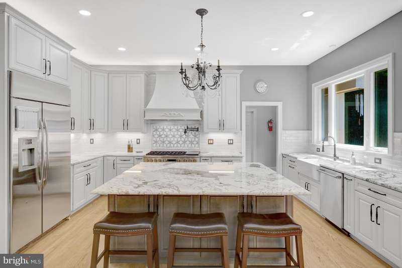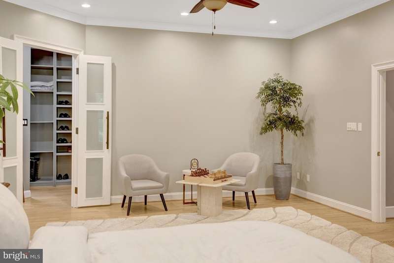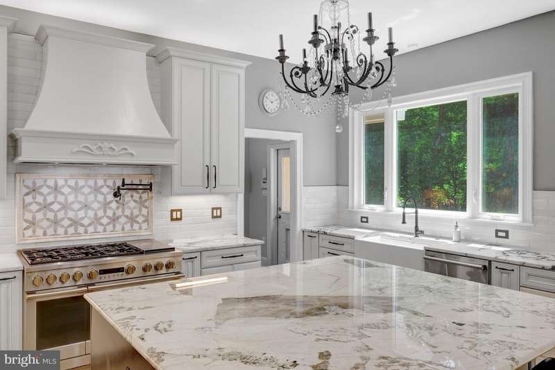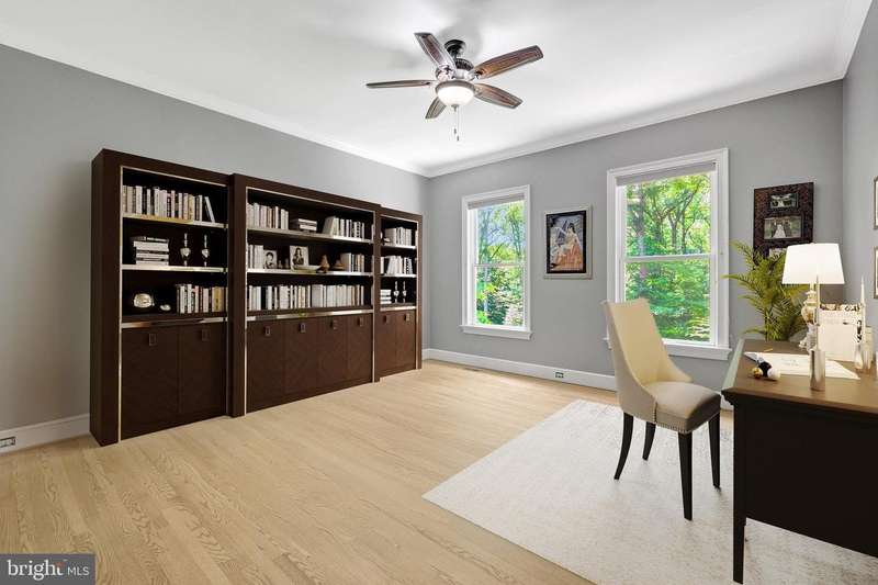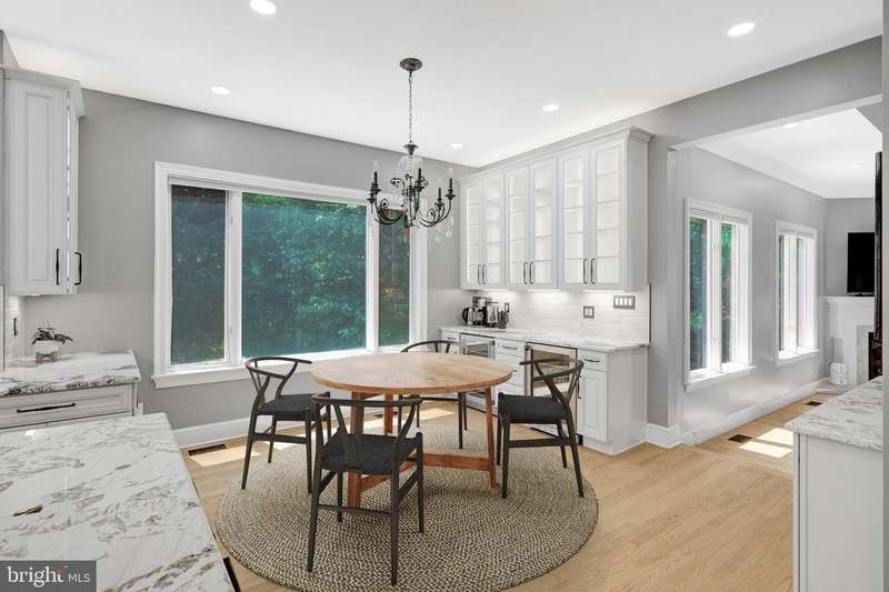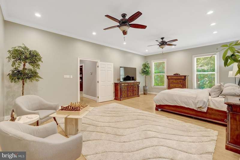 Welcome to this unique V-shaped residence, framed by four stately columns and a soaring artistic Palladian window. This distinguished home, offering 9 bedrooms and 8 ½ baths and providing over 9,000 sq ft of living space, is located in one of the most desired and lovely neighborhoods on the east side of Great Falls; the proximity to the village center, Riverbend Country Club, and the national and regional parks can't be beat. An elegant octagonal foyer sets the tone for the home's refined and thoughtful design. The main level features beautifully refinished hardwood floors and flows seamlessly into a remodeled gourmet kitchen and a dramatic two-story family room, which is framed above by a striking gallery-style promenade. Expansive picture windows throughout flood the home with natural light and offer sweeping views of the surrounding woodlands. The main level also hosts the spacious owner's suite-a true retreat-featuring a recently renovated bathroom with luxurious, spa-quality finishes. Upstairs, you'll find four generously sized ensuite bedrooms, each offering comfort and privacy. The fully finished lower level adds even more versatility, with four additional bedrooms, a full kitchen, and ample space for guests, multi-generational living, or extended entertaining. Outdoors, a private path winds through the backyard, providing direct access to the scenic Potomac River-a rare and coveted amenity.