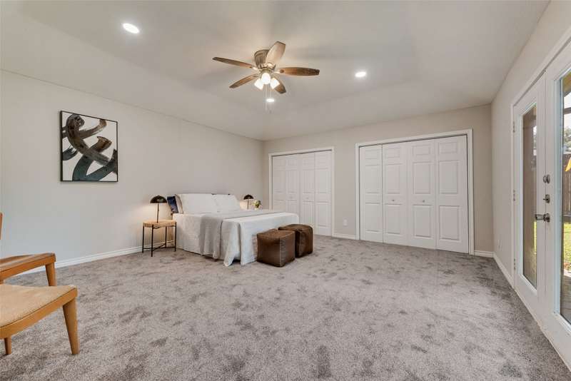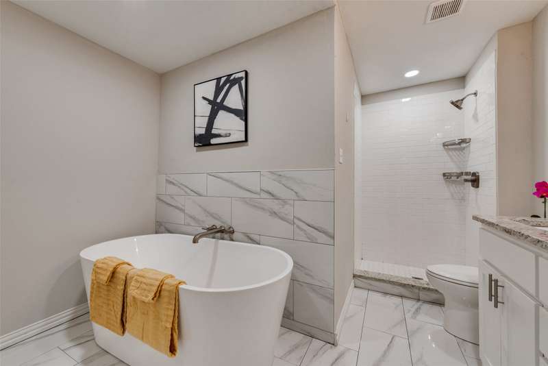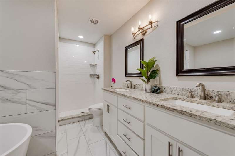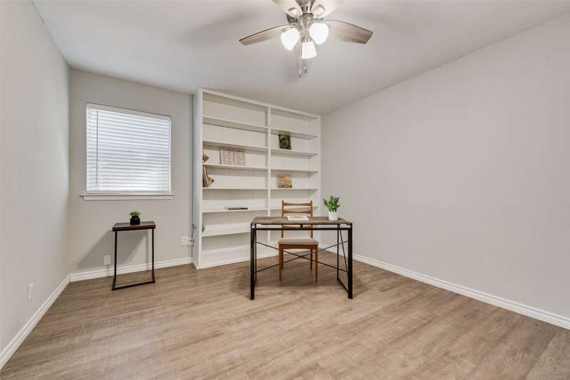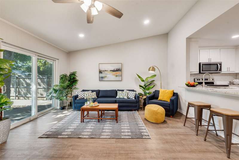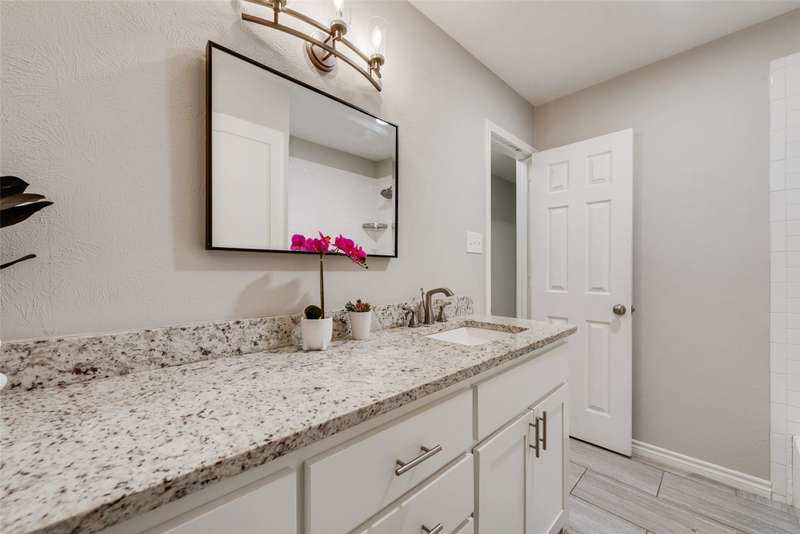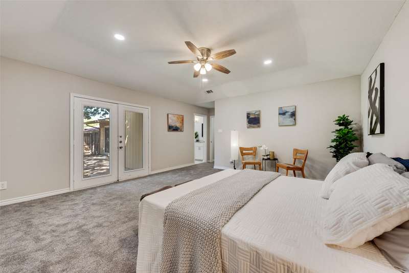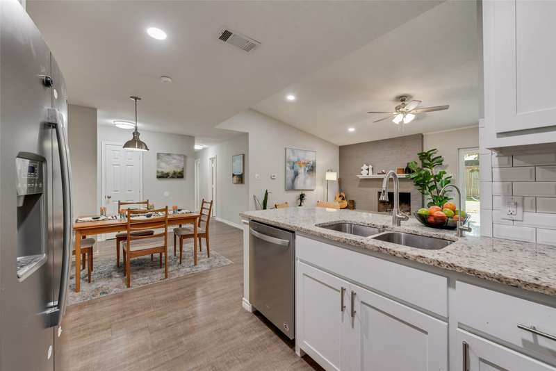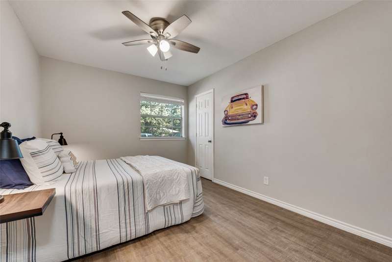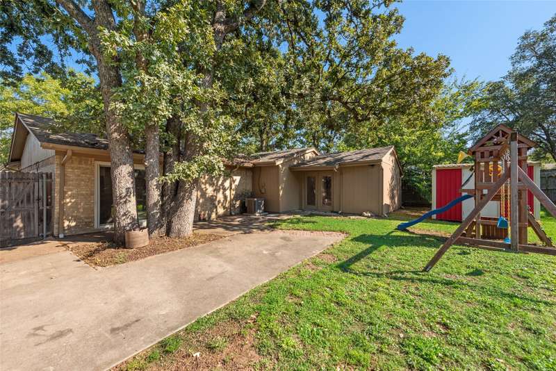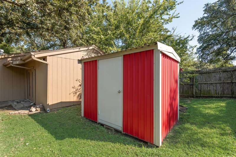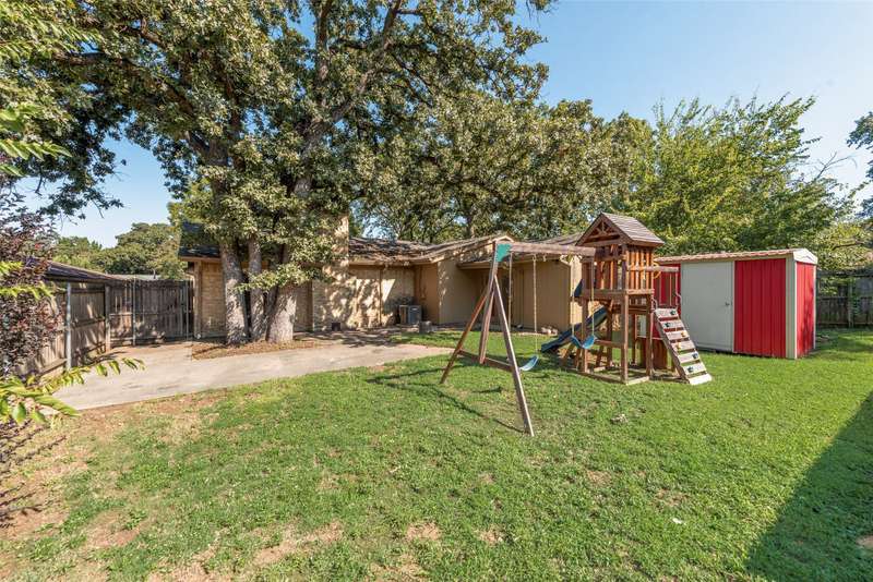 This beautifully renovated traditional home is nestled in the highly sought-after Holly Hollows neighborhood. Meticulously updated and maintained, this residence offers a perfect blend of comfort and style, featuring an updated kitchen, modern bathrooms, and stylish flooring. For added peace of mind, the front door is equipped with three-point locking hardware, and a recent foundation repair, completed with a transferable lifetime warranty, ensures the home's long-term stability.The open-concept design is ideal for modern living, seamlessly connecting the kitchen, dining, and living areas under a high sloped ceiling to create an expansive and inviting space for entertaining. The oversized primary bedroom is a true sanctuary with a cathedral ceiling that adds to its spacious feel with room for a sitting area, and is tucked far away from other bedrooms and living areas, yet has direct access to the back yard through french doors.Mature trees surround the property, providing shade and privacy, while a whole-house water softener guarantees high-quality water throughout the home. The home features three well-sized bedrooms and two full bathrooms, plus a versatile flex space that is ideal as a home office, playroom, or a potential fourth bedroom. The backyard is an ideal spot for relaxation and recreation, featuring a playground and a practical storage shed. With easy access to major highways (I-20, I-30) and the nearby Lake Arlington, this location offers both convenience and natural beauty.