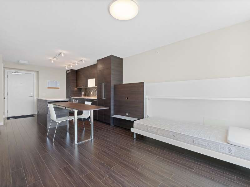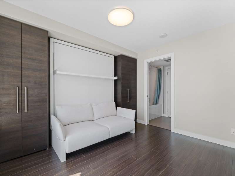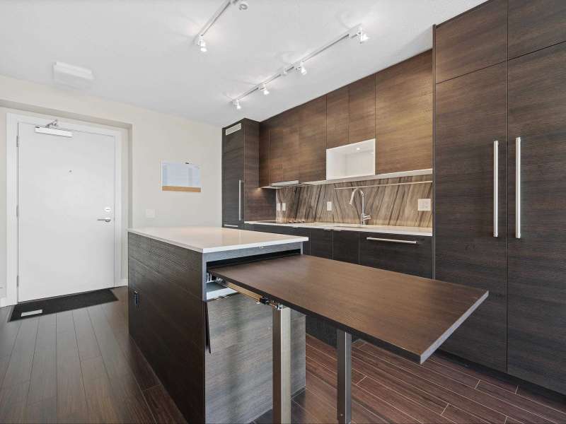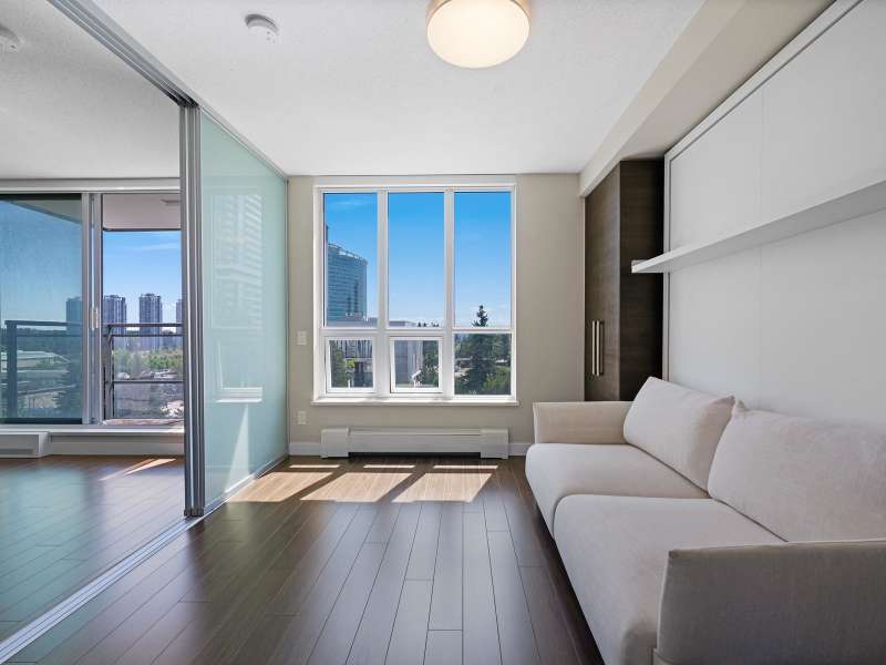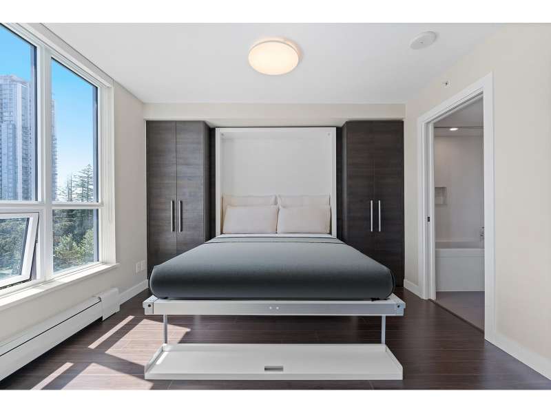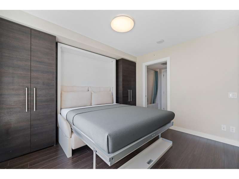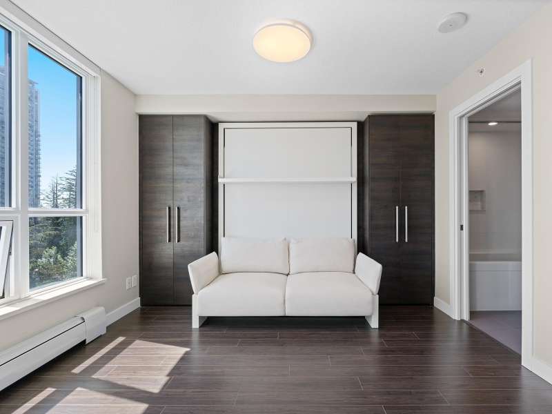 Welcome to Alumni, a sought-after concrete high-rise where intelligent design meets modern city living. This 1 bedroom corner unit offers exceptional privacy, paired with thoughtfully designed interiors & exceptional functionality. Discover a bright & spacious layout featuring Bosa's signature space-saving features: an integrated dining table that extends from the kitchen island, a built-in guest bed concealed within sleek millwork, & a pull-out bed that effortlessly converts into a sofa. Designed for both comfort & functionality, every square foot is maximized to suit your lifestyle. Steps to the SkyTrain, SFU, KPU, T&T Supermarket, Central City Mall, & an array of dining and shopping options. 1 parking, 1 locker, vacant & easy to show. Live smarter, live better! (id:58403)