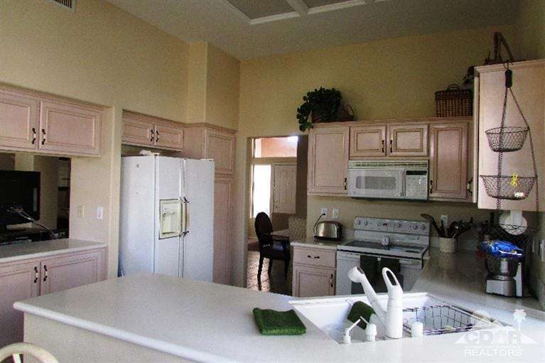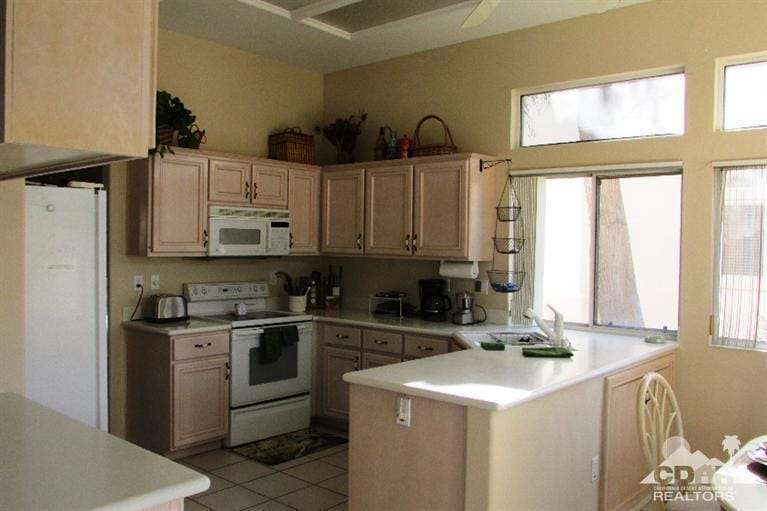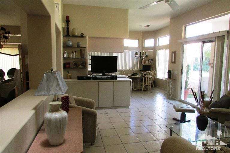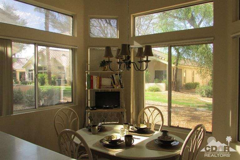 Reserved winter of 2025 - 2026. Sun City Palm Desert Opal model. Enjoy all the comforts of home in this 2 bedroom, 2 bathroom, furnished, well-stocked residence with family room, living room, formal dining room and kitchen with breakfast nook facing back patio and greenbelt. Attached home features 2 TVs, 3 skylights, north-facing back patio and tiled floors in all rooms except carpet in bedrooms. Enjoy the morning sunrises from the outdoor area. Master bedroom suite with king sized bed and alcove window. Master bathroom with double vanity, walk in shower and walk in closet. 2nd bedroom on opposite side of house for ultimate privacy with queen bed. 2nd full bathroom with designer paint and shower over tub. Separate office alcove. Wifi. 2 car garage. Washer and dryer in garage. Sun City PD is an active adult community (1 person must be 55. With golf courses, pools, tennis, ,pickleball and much more. Call for summer rates.