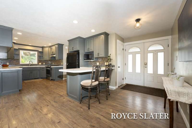 This wonderful home has been well maintained and tastefully updated. Right away you'll notice the new roof, limewash brick, vinyl siding, and triple pane windows. All surrounded by a great yard on a corner lot with a private fenced in backyard. Stepping inside we find an open floorplan layout with new flooring, trim work, painting, snack bar, kitchen, sunken living room w/fireplace, and dining area. Down the hall are three bedrooms including the primary with full bath. The hall off the kitchen leads to a full bath and main floor laundry room. Beyond that is the attached two stall garage and stairs to the finished basement. Down here we have the family room w/fireplace and could be two more bedrooms if egress windows were added. The attic was re-insulated in 2024, so ready for all seasons!