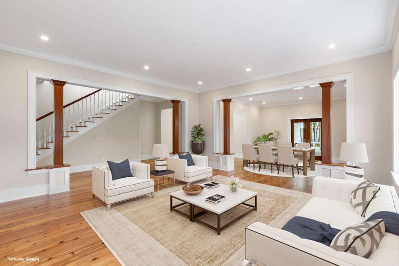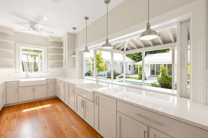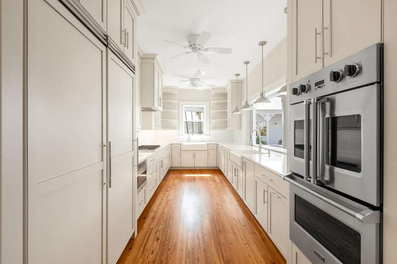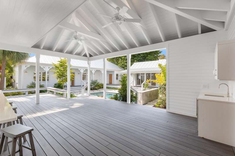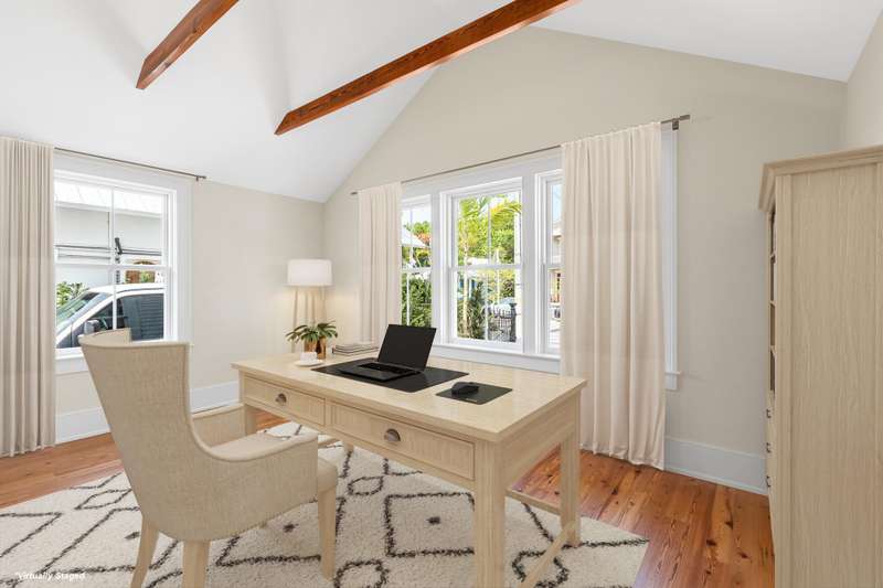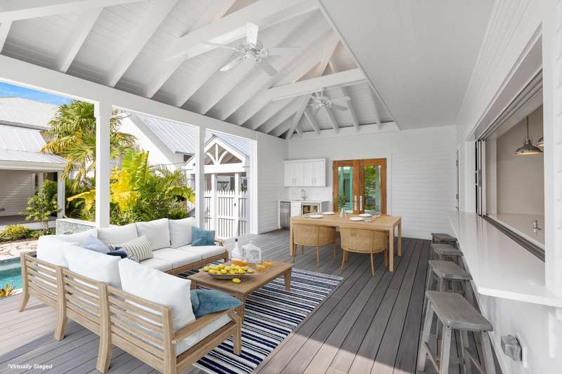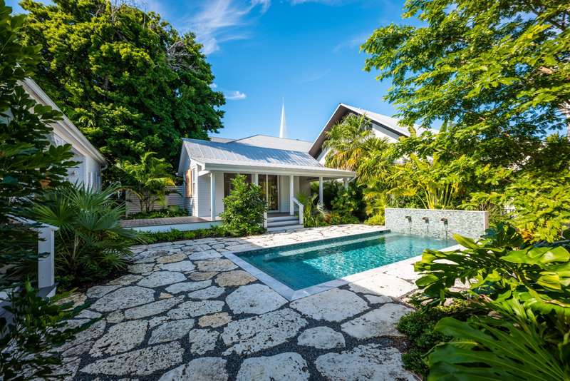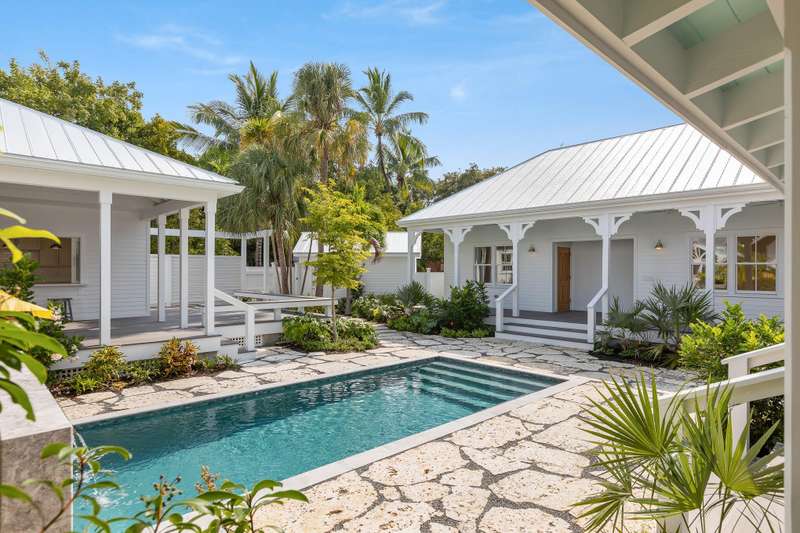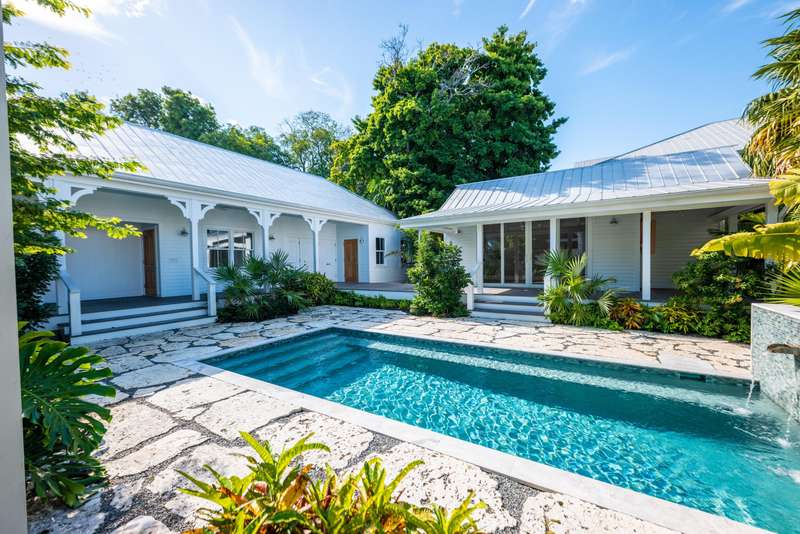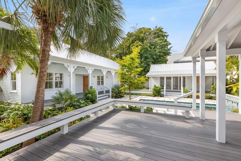 Nestled in the heart of Key West's historic district, 616 Eaton Street is a testament to quality, timeless beauty, and refined living. This single-family residence was constructed in 1911 and painstakingly renovated and reimagined over the last few years culminating in 2024 with the spectacular like new home. Most hidden from the Street, it exudes classic Key West architecture blended with modern elegant designs. With 5 bedrooms, 5 full baths & 2 half baths, the home spans 4,000sf on a large 12,478sf lot. The 2-story primary home contains the living room, dining room, kitchen, 2 office spaces/dens, one of which could be a bedroom if desired, 2 half baths on the living level & a spectacular 2nd floor primary suite with office/ laundry & an enormous outside covered deck for private lounging. Thoughtful renovations include a stunning glass wall that opens between the outdoor dining pavilion & the top of the line kitchen w/ functional pass-through windows from the kitchen to the pool area. Reclaimed hardwood floors & tall ceilings ensure a perfect balance of historical character & contemporary functionality. The substantial living area, accented by natural light, offers a warm & inviting atmosphere & the gorgeous central pool w/ a water feature creates a stunning outdoor oasis & is perfect for entertaining. Surrounding the pool & outdoor dining pavilion are 2 phenomenal guest houses, housing a total of 4BD/4BA plus a full 1,512sf attic w/ staircase that is built for storage. Lots of off-street parking is offered along w/ a carport & small garage. Everything is new, from the hard wood floors & bathrooms to the salt generated heated pool & generator. This property is a rare offering that combines historical significance, luxurious living & an unbeatable location in one of Key West's most coveted neighborhoods. Located in the X flood zone just 2 blocks from both Duval St. & the Historic Seaport, it is walkable to all the wonderful restaurants, galleries & shops.