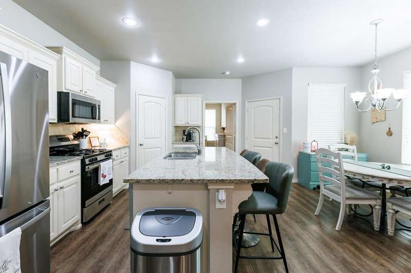 Welcome to this bright and beautiful 3-bedroom, 2-bathroom home located in the sought-after North Pointe subdivision of Lubbock. This newly listed residence offers 1,614 square feet of well-thought-out living space designed for comfort, function, and style. From first glance, the curb appeal captures attention with a stained wood fence, inviting covered front porch, and a charming iron gate topped with a pergola-perfect for greeting guests or enjoying your morning coffee. Thoughtful landscaping enhances the welcoming feel, setting the tone for what you'll find inside. The open-concept layout creates a seamless flow from the living area into the dining space and kitchen, allowing for easy entertaining or simply spreading out at home. Large windows fill the interior with natural light, contributing to the cheerful and airy ambiance throughout. The living area offers enough space for relaxing or gathering, and the neutral tones make it a canvas for your personal style. In the kitchen, both function and form come together. A gas range makes cooking a breeze, while the walk-in pantry offers convenient storage for all your culinary essentials. From meal prep to midnight snacks, this kitchen is ready for your daily life. The primary bedroom is a peaceful retreat positioned away from the other two bedrooms for added privacy. The adjoining en suite bathroom includes a sleek walk-in shower and ample vanity space, creating a private oasis for winding down at the end of the day. Two additional bedrooms offer flexibility-you can use them for guests, as a home office, or for hobbies depending on your needs. A full second bathroom ensures convenience and comfort for every member of the household. Heading outdoors, the east-facing back porch is covered to keep things cool during sunny summer mornings. Whether you're hosting gatherings or taking in a quiet evening, this space has you covered-literally. The backyard offers room to roam while the stained fence adds both security and privacy. What's outside your front door is equally impressive. Just a short drive away, you'll find easy access to Texas Tech University and two top medical facilities-University Medical Center and Covenant Medical Center. Grocery runs are simple with Food King nearby, and when it's time to unwind, Richard Lopez Park offers green space and play areas for all ages. For those with interests in local education initiatives, the Lubbock ISD Agristem complex is also easily accessible. Whether you're commuting to work, class, or a game day at the Jones Stadium, this centralized location offers excellent connectivity while maintaining a peaceful neighborhood charm. This home combines everyday functionality with thoughtful touches of charm, making it a great fit for a range of lifestyles. If you're looking for a comfortable space in a convenient area, with just the right amount of style to make it your own-this could be the one. Come see what life could look like here!