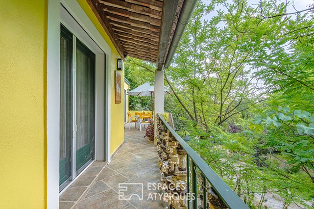 The main house, built in the 1980s, stands out for its generous volumes and functional layout. A modern, fully equipped kitchen under a veranda, bathed in natural light, opens onto a cozy living room with a fireplace. On this same level, a master suite offers a private and comfortable retreat. The lower floor hosts three bedrooms with direct outdoor access, sharing a bathroom. The top level includes a study area and an additional bedroom. An artist's workshop adds an inspiring and creative touch to this characterful home.