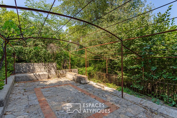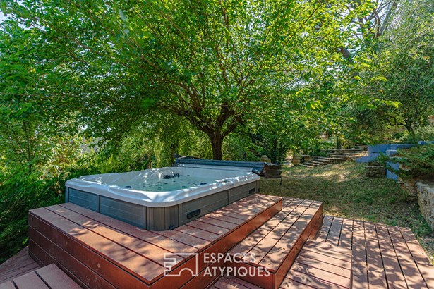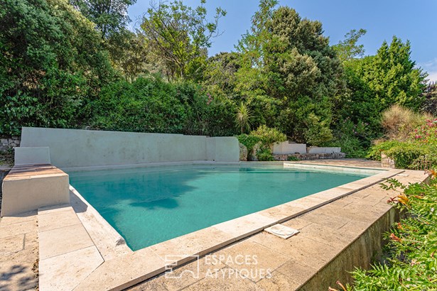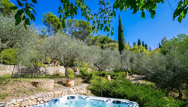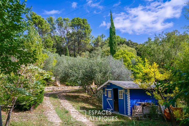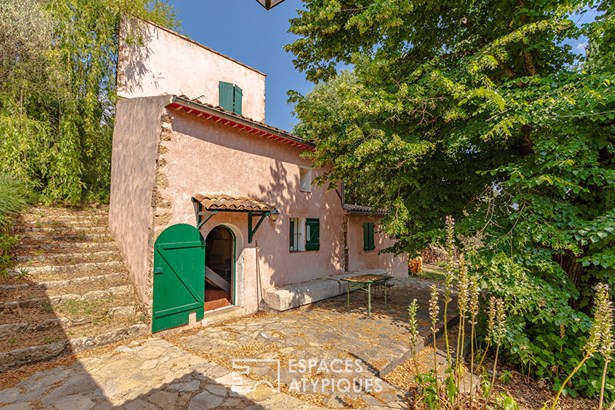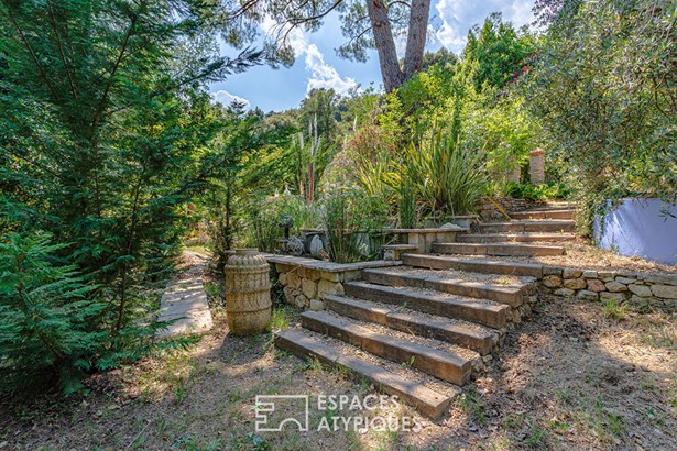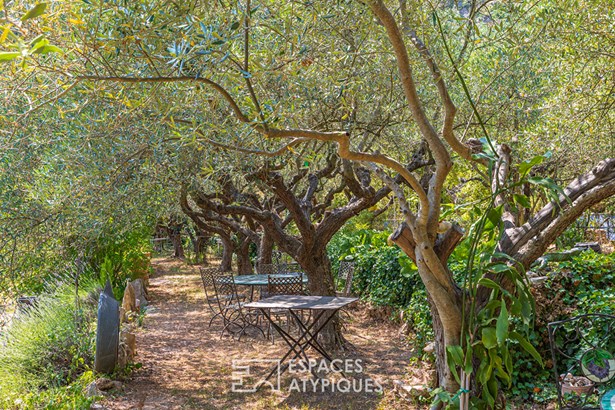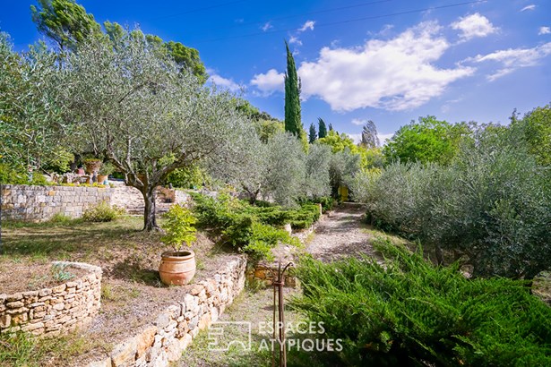 Outside, the garden is a sensory journey, punctuated by small streams fed by the Saint-Martin spring. Olive trees allow for the production of homemade olive oil, while persimmon, cherry, apricot, mulberry, and fig trees enrich this exceptional orchard. A chicken coop, garage, and several workshop spaces complete this harmonious haven connected to nature.