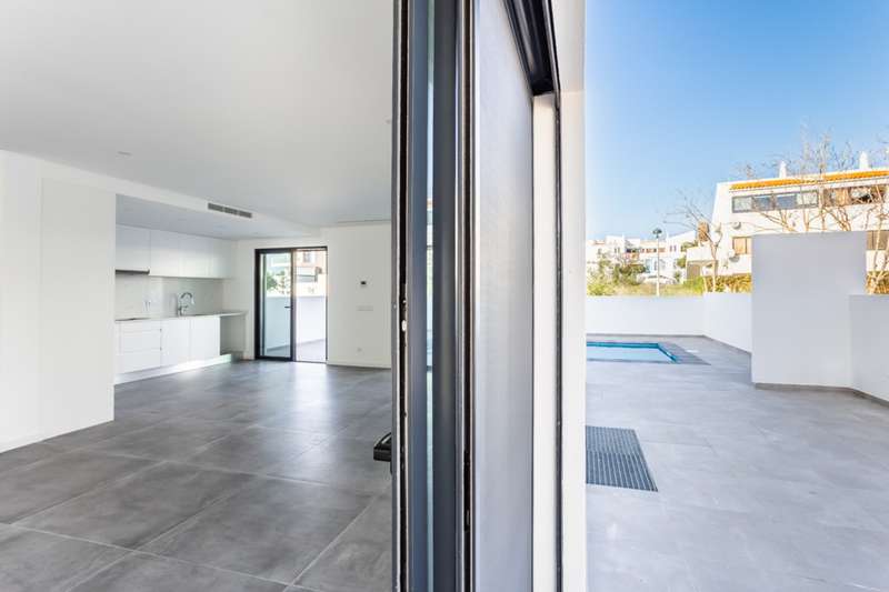 Discover this magnificent contemporary design villa overlooking the estuary, located just a 5-minute walk from the stunning Cavacos Beach. Ideal for lovers of water sports and hiking along the Olhão-Fuzeta ecovia in the Algarve, this property offers an exclusive lifestyle. On the first floor, the kitchen equipped with TEKA appliances connects to the living room, which offers a peaceful view of the pool. The upper floor is dedicated to relaxation and consists of three bedrooms. The master suite has an en-suite bathroom, walk-in closet and a terrace overlooking the pool. The other two bedrooms have balconies overlooking the Ria Formosa. The 70 m² panoramic terrace offers a 360º view, perfect for moments of relaxation, while the refreshing pool, with shower and outdoor dining area, complements the space. The property also has a large 46 m² basement , naturally lit and adaptable as a bedroom, cinema room or games space, equipped with a bathroom, laundry room and storage room. Don't miss the opportunity to live in this true natural paradise. CHARACTERISTICS: Plot Area: 242 m2 | 2 599 sq ft Area: 214 m2 | 2 303 sq ft Useful area: 214 m2 | 2 303 sq ft Deployment Area: 82 m2 | 877 sq ft Bedrooms: 3 Bathrooms: 4 Garage: 2 Energy efficiency: A+ FEATURES: 3-bedroom villa Contemporary design View of the Ria Formosa 5 minutes from the beach Swimming pool Terrace
