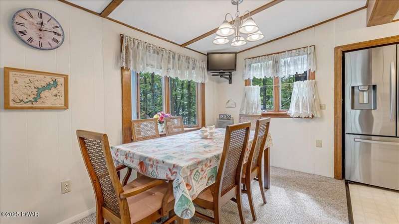 Lake Wallenpaupack Lakefront Home in Pine Beach Community - 50' of Frontage & Private Dock Welcome to your peaceful lakefront escape! This charming 3-bedroom, 1.5-bath home is ideally located in the private and quiet Pine Beach Community, offering 50 feet of prime Lake Wallenpaupack frontage, stunning views, and direct access to the water via a gentle slope and easy, short walk--no steep climbs here!Enjoy lake life to the fullest with your own private boat dock, wooden steps leading to the shoreline, and a fenced front yard--perfect for pets, kids, or simply relaxing in your own space. Inside, the home offers a bright and airy open floor plan, central air conditioning, and propane forced hot air heat, making it a comfortable retreat year-round. Key Features: Fully furnished - move-in ready! All appliances included, Outside covered porch with lake views - unwind with your morning coffee or evening drink, Spacious patio with barbecue grill - ideal for lakeside entertaining, Full basement with ample storage, a second small kitchen like workspace, and room for hobbies or lake gear, Blink security system included for added peace of mindPlease note: Short-term rentals are not permitted, helping to preserve the serenity and privacy that makes Pine Beach so desirable. Whether you're searching for a year-round residence or a peaceful seasonal getaway, this lakefront gem offers comfort, convenience, and unmatched natural beauty on one of Pennsylvania's most sought-after lakes.