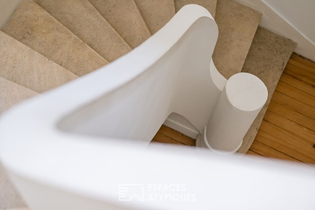On the other side, a generously sized living room, extended by a large bay window, gives access to the rooftop terrace of over 60 sqm, a true haven of light and tranquility in the heart of the city.