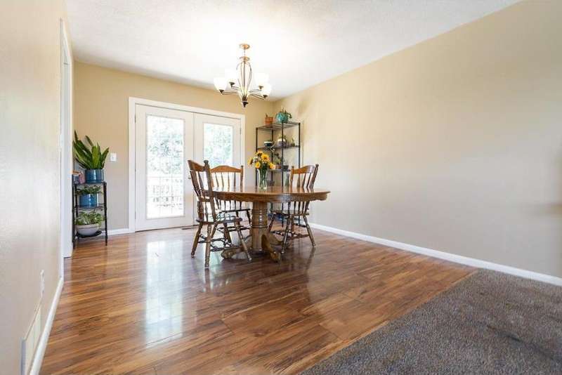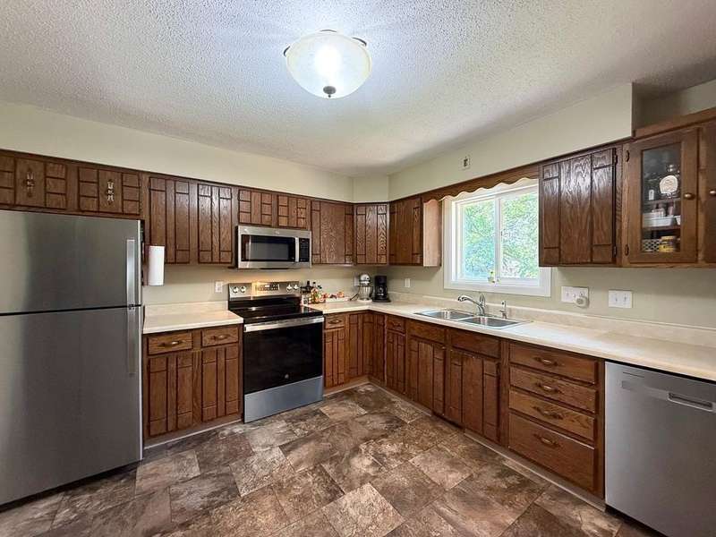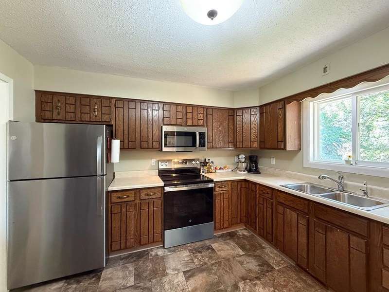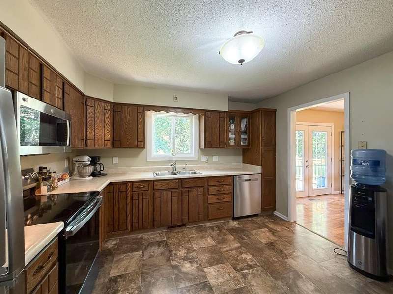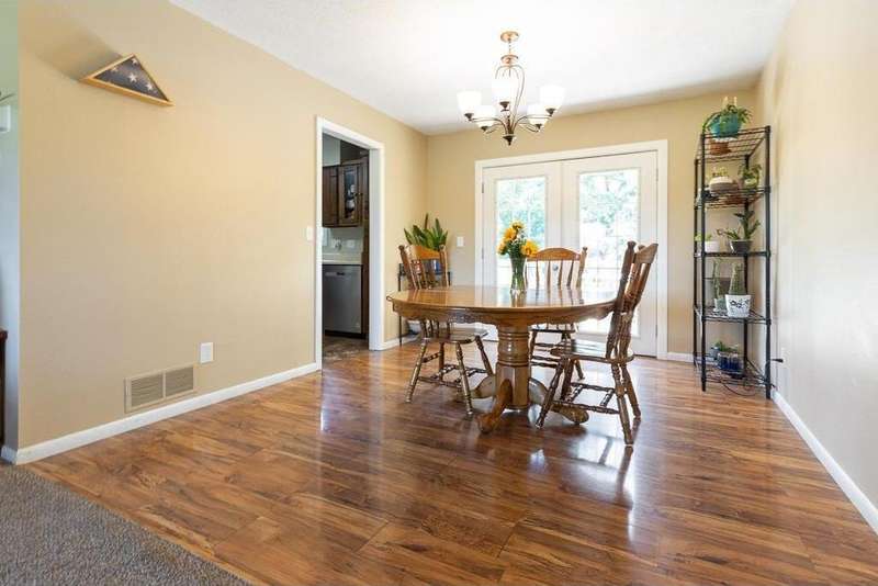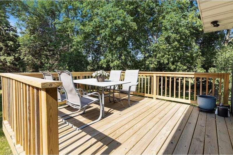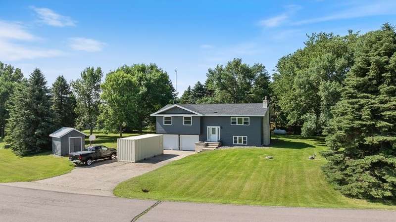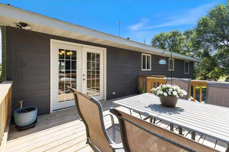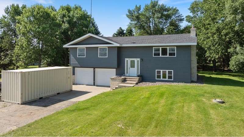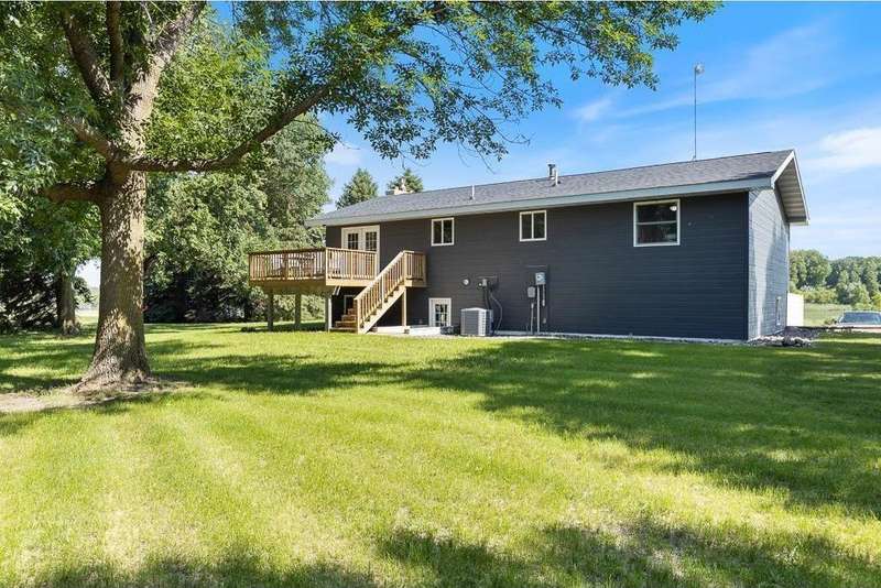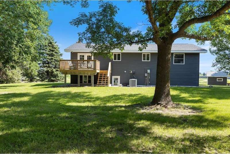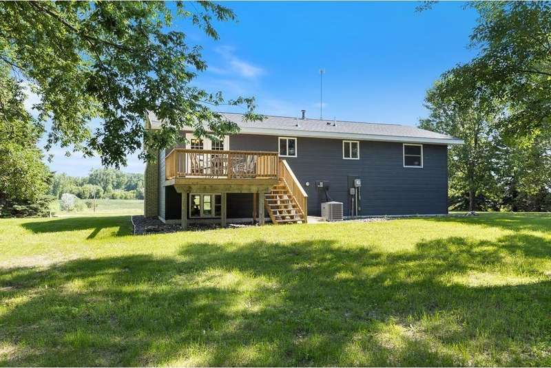 Welcome to this beautifully updated split-level home in the highly desirable Rolling Hills Estate neighborhood, just north of Montevideo. Set on a spacious lot with peaceful country views, this property features a serene backyard surrounded by mature trees and a brand-new deck added in 2025—perfect for outdoor relaxation and entertaining. The home’s exterior has seen major upgrades including Smart Board siding, new windows, exterior doors in 2021, a new roof in 2022, soffit, fascia, and new garage doors in 2023—delivering both curb appeal and long-term value. Inside, the upper level offers a warm and inviting layout with three bedrooms, a full bathroom, 1/2 bath on suite, and a bright living room. The open dining area connects directly to the deck, offering a seamless indoor-outdoor flow. The kitchen is equipped with brand new appliances adding both style and functionality. The lower level features a cozy family room with a fireplace, a half bathroom (plumbed for future shower to make it 3/4), and a laundry room with walkout access to the backyard. The attached tuck-under garage offers convenience and additional storage. Comfort is further enhanced with fully updated HVAC systems in 2021/2022. With thoughtful updates throughout and a location in one of the area’s most sought-after neighborhoods, this move-in-ready home is a must-see!