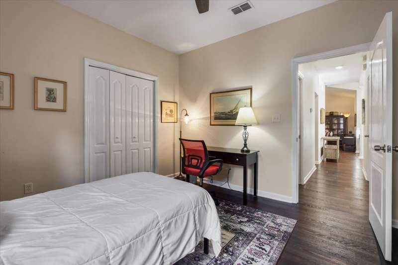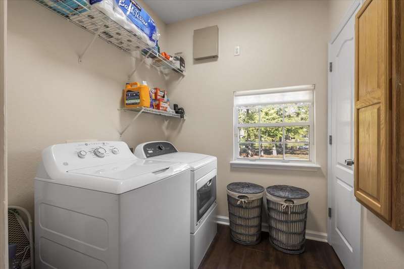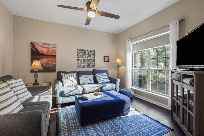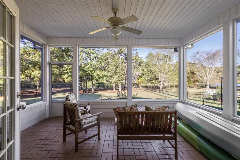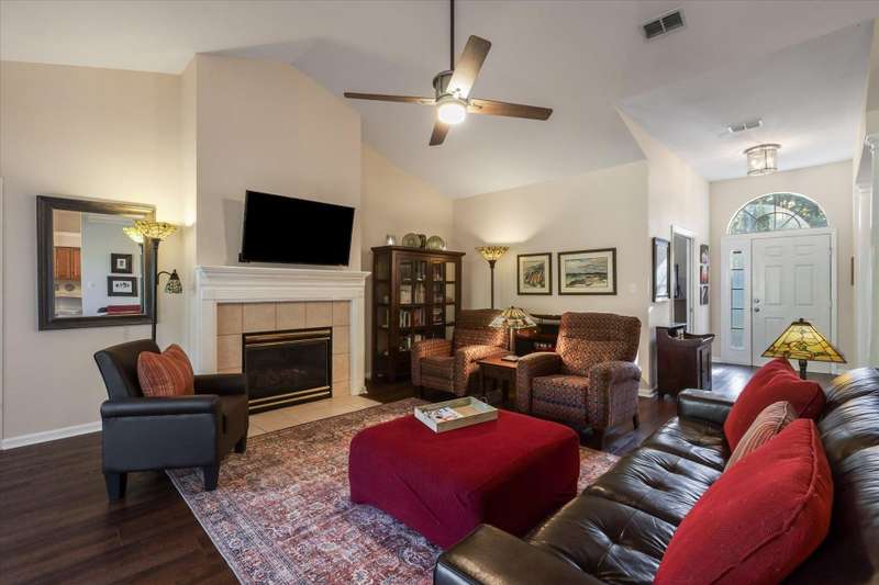 Rare find! Truly turnkey waterfront home located on spring-fed Pine Hill Lake. The home is updated and inspected with well-maintained systems including a 2025 water heater, 2018 roof, and 2016 HVAC. Sit on your screened porch or patio facing the natural shoreline of Horseshoe Plantation and watch the wading birds, or fish and kayak this 35-acre lake from your backyard. Located on a quiet cul-de-sac, walk to the community pool, or drive just a few minutes to top schools, shopping, and restaurants. This home offers light and space, with most rooms overlooking the lake. Enjoy a gas fireplace, 9 foot and vaulted ceilings, kitchen with KraftMaid cabinets and quartz countertops, luxury LVP flooring throughout, an owner's suite with walk-in closet, large bedrooms, a den and dining room, two updated step-in showers, a soaking tub, laundry room with closets, oversized garage with storage loft and attic, fenced backyard, and irrigation system. See the seller's property disclosure for a full list of updates - there are too many to list here. Total square footage under roof 2809, includes garage and screened porch.