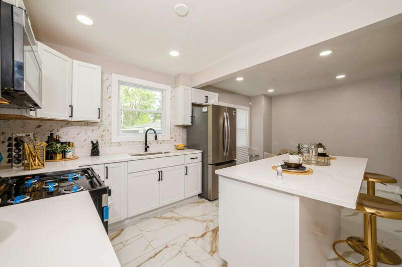 Welcome to your dream home in the heart of Gary's West Side! This fully renovated 4-bedroom, 2-bath home is a rare find, combining modern luxury with functional living. Step inside to discover beautiful hardwood floors, custom trim, and designer ceramic tile throughout. The chef's kitchen is a showstopper, featuring a large island, sleek new cabinets, stainless steel appliances, and an open layout perfect for cooking and entertaining.The main living room showcases a stunning custom media wall with a fireplace, creating the ultimate cozy yet sophisticated atmosphere. The finished basement doubles as an entertainment hub with its own media wall and fireplace, a game room area, flex/guest bedroom, private laundry, and plenty of storage--ideal for extended family living or hosting.Upstairs, the owner's suite is a private retreat with incredible space for relaxation, work, or entertaining--your own personal oasis. The bathrooms are expertly designed with custom tile work and high-end finishes, elevating everyday living.Outside, enjoy a private yard, garage, and the convenience of being centrally located near schools, parks, shopping, and major highways.This home is move-in ready and waiting for an owner who values quality craftsmanship, modern design, and attention to detail.