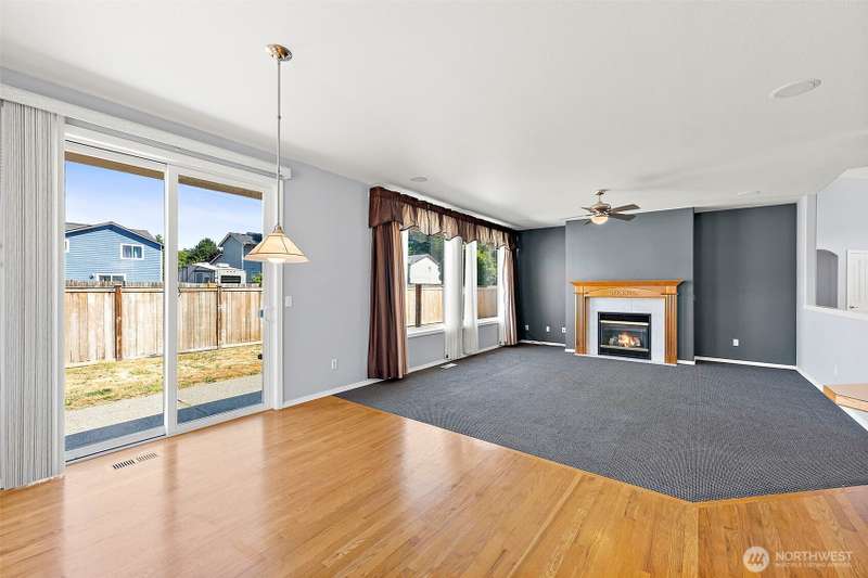 NEW ROOF & NEW PRICE! Hard-to-find 2,292 SF single-story home in the sought-after gated community of Cedars Bend @ River View! 3 bedrooms PLUS bonus room/office, 2 living and 2 dining areas! Versatile floorplan for everyday living & entertaining. Step inside to find gleaming hardwood floors, soaring ceilings, and spacious open-concept layout. Eat-in kitchen complete with island, walk-in pantry, & sunny slider that opens to the fully fenced backyard. Front room includes cozy gas fireplace. Primary suite features recently remodeled ensuite bathroom with generously sized low-threshold shower & walk-in closet. A/C (heat pump) & 3-car garage! Nearby access to community park, rivers, golf course, and paved trails for walking, running, or biking.