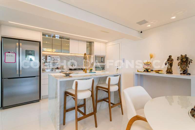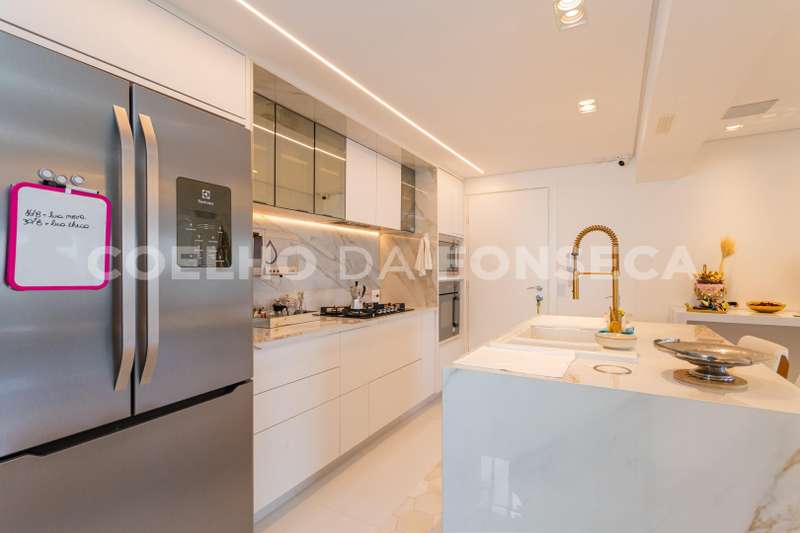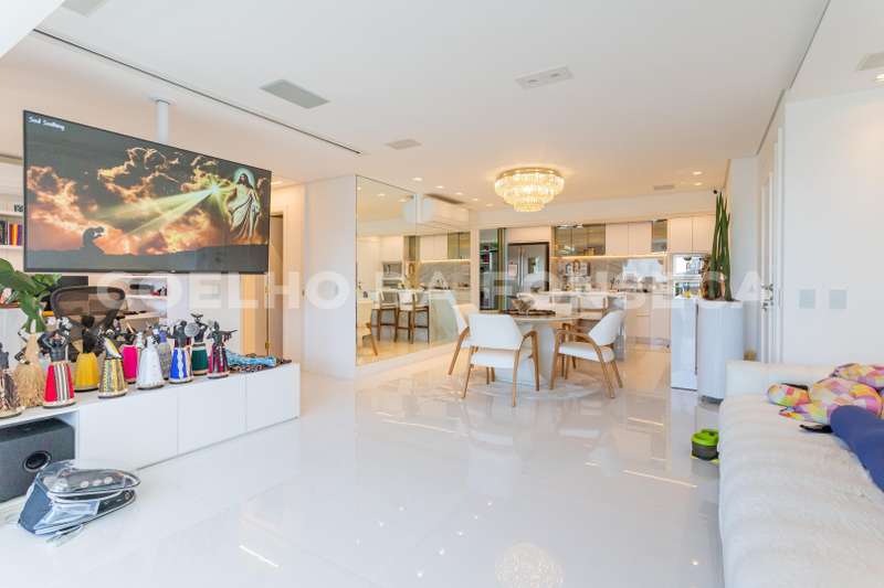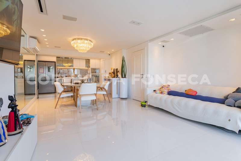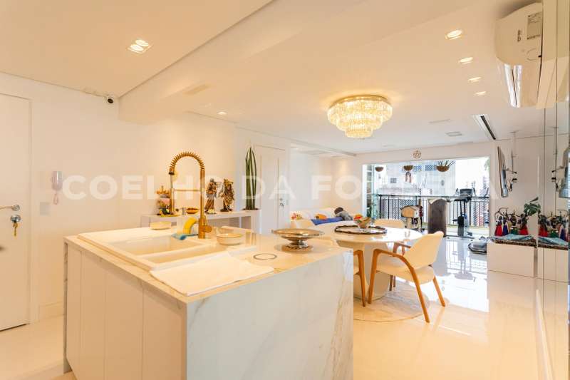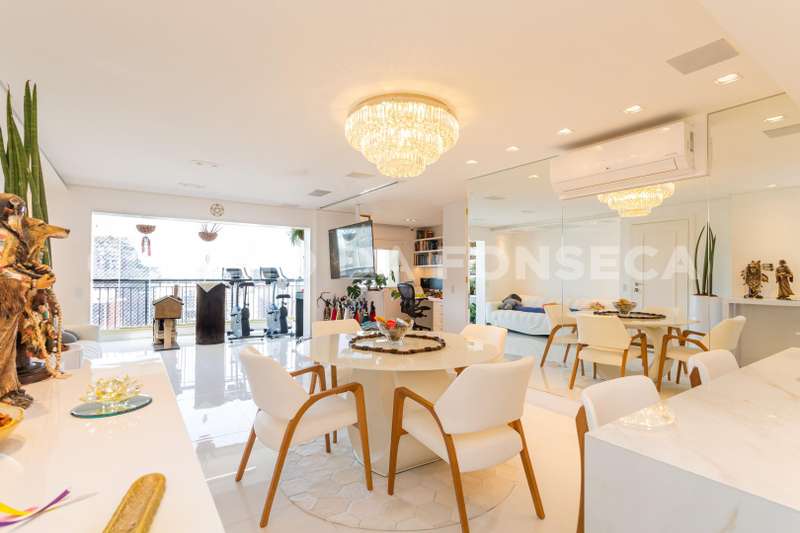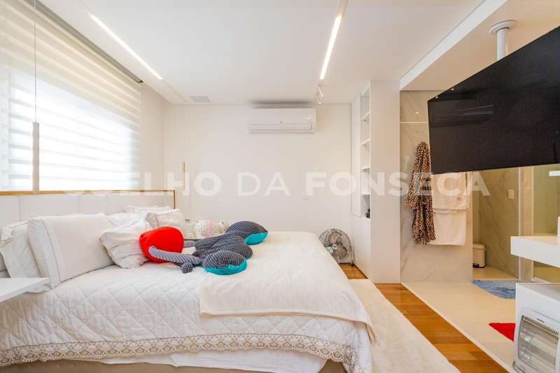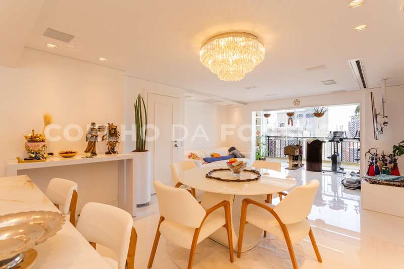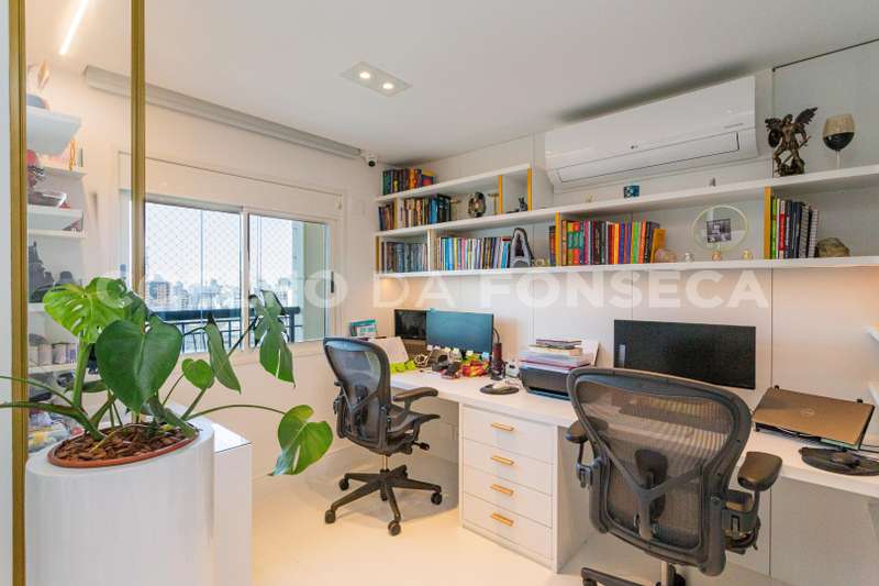 Apartamento recentemente reformado, totalmente mobiliado e automatizado com integração à Alexa. Possui alto padrão e modernidade, situado no topo de um condomínio exclusivo da Cyrela. Vista panorâmica incrível em local nobre de São Paulo. Unidade com 02 suítes, uma para hóspedes (quarto e amplo banheiro) e outra de casal (ampla, com closet, vitrine para acessórios, penteadeira embutida, cama king size e banheiro luxuoso com hidromassagem e box - sauna). Escritório integrado à sala, sala ampliada com TV giratória de 65 pol., projetor/telão, caixas de som embutidas, cozinha tipo "americana" com ilha/bancada e eletrodomésticos de luxo da Eletrolux. Lavanderia conectada com celular/alexa, despensa espaçosa, banheiro adicional, 04 vagas de garagem, depósito amplo, automação via Alexa para luzes, persianas e janelas. Móveis de marca luxuosa, sofá elétrico Natuzzi, lustre K11, piso Porto Belo, portas blindadas. Um lar verdadeiramente confortável e luxuoso.