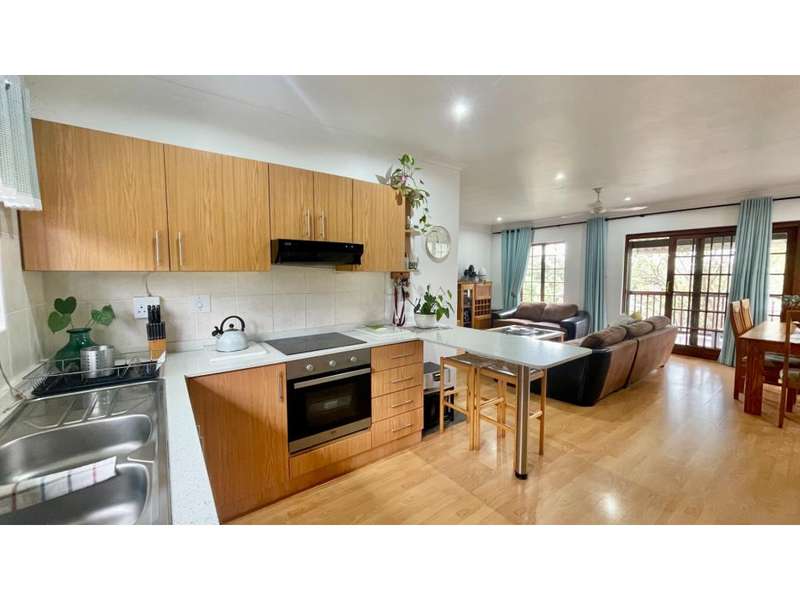 This immaculate 3 bedroom townhouse is located in the rocky Faerie Glen complex. Spacious open plan living area with doors that lead to a wooden covered deck with views over the complex. Double garage with plumbing for a washing machine. The complex has a communal pool, clubhouse, lapa and tennis courts and a river that runs through the bottom of the complex. The bird life is exquisite. Close to all amenities.