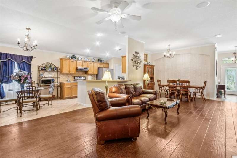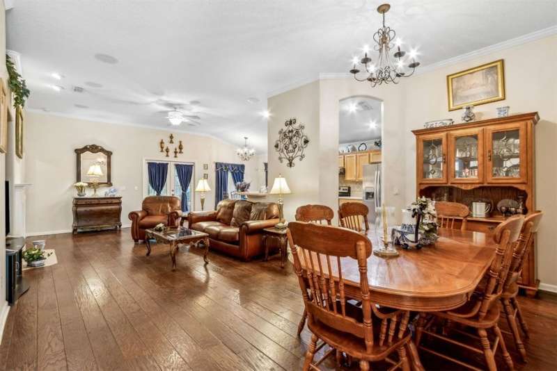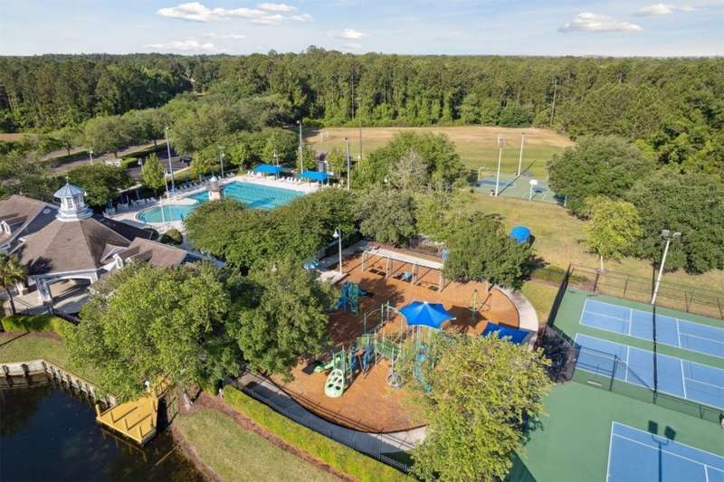 Welcome to North Hampton Living at Its Finest! This beautifully maintained one-owner single-story home is nestled in the sought-after North Hampton golf course community, featuring a semi-private Arnold Palmer-designed course open to the public, complete with a clubhouse and restaurant. Enjoy resort-style amenities including a lap pool, kids splash zone, tennis and pickleball courts, multi-use sports field, playground, and the scenic Lofton Creek Outpost?a private retreat with a kayak launch, fishing dock, BBQ pits, screened dining area, and deck perfect for family gatherings and outdoor fun. Inside, the home offers peace of mind with a newer roof and AC system, and a thoughtfully designed layout. The owners suite features a separate walk-in shower and relaxing garden tub. A versatile 4th bedroom at the front of the home doubles as the perfect home office, while the covered and screened back patio opens to a spacious, fenced-in yard?ideal for pets, play, or entertaining. Set along a peaceful semi-circle street, the property enjoys added privacy thanks to an HOA-maintained landscaped island that separates it from the main road. HOA dues include cable, high-speed internet, and security system monitoring?offering true value and convenience. Dont miss your chance to live in one of the area's premier communities with top-tier amenities and a welcoming neighborhood vibe.
