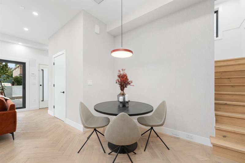 Nestled in Mount Pleasant’s coveted Cedar Cottage neighborhood, this newer Medallion Homes duplex dazzles with 4 bedrooms (3 on one level), 4 baths, and just under 1,700 sqft of stylish living. Built just last year, with NO GST applicable, this home features 10' ceilings, herringbone hardwood, built in speakers, and a metal roof with modern cladding and AC. Enjoy the convenience of an attached garage, extra parking pad, vast crawl space storage, and premium appliances, all backed by a 2/5/10 warranty! Move-in ready!