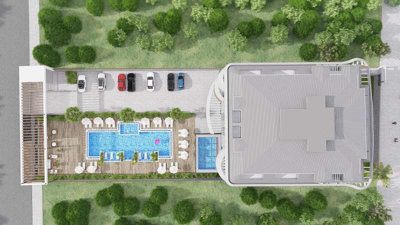 The complex, which is located by the sea and built on a total area of 2350 m², offers you social activities such as indoor/outdoor swimming pool, barbecue area, sauna, gym and outdoor parking lot.