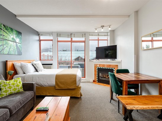 A cozy Whistler retreat with great revenue potential! This bright Alpenglow studio is perfectly located in the heart of the Village—steps to shops, restaurants, and the gondolas. With lofty 9’ ceilings and expansive windows, the space is filled with natural light. Take in beautiful mountain views from your private balcony. The suite features air conditioning, a gas fireplace, and an owner storage closet. Enjoy resort-style amenities including a heated outdoor pool, hot tub, sauna, gym, ski/bike storage, shared laundry, and secure underground parking. Alpenglow stands out from most Phase 2 properties with its unique flexibility—owners can manage their own nightly rentals on Airbnb for higher returns or let the front desk handle everything for a hands-off experience.