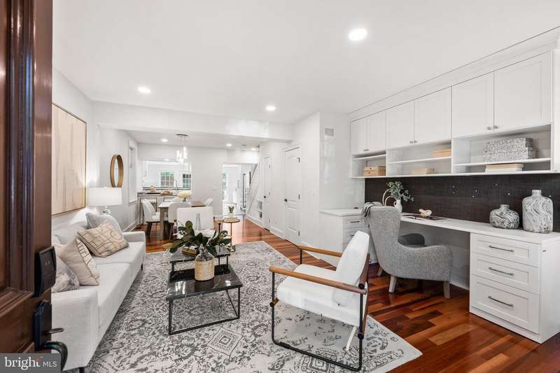 This beautifully expanded and updated 1890 Capitol Hill rowhome offers 4 bedrooms and 3.5 baths in one of DCs most sought-after and historic neighborhoods. Surrounded by lush front landscaping and featuring a charming brick front porch, the home welcomes you with bright interiors, gorgeous hardwood floors, and thoughtfully designed living spaces. The home has a large two-story rear extension, which includes a finished cellar, expansive rooftop deck, which dramatically increases the homes size and functionality while preserving its historic charm.The open main level features a cozy living room, a formal dining room with a breakfast bar pass-through to the gourmet kitchen, which boasts granite countertops, a Viking 6-burner range with hood, built-in microwave, double basin farmhouse sink, full-size Sub-Zero refrigerator and full-size Sub-Zero freezer. The kitchen opens to a light-filled family room with French doors that lead to a bricked rear patio and beautifully landscaped backyardperfect for entertaining. A powder room and built-in home office with extensive custom cabinetry complete the main level.Upstairs, the second floor offers three bedrooms and two full baths, including a spacious primary suite with double vanity, a glass-walled shower with bench, and decorative tile. A washer/dryer closet is conveniently located in the hallway, along with a well-appointed shared bath. The top level includes a fourth bedroom/office with its own full bath, built-in storage, and French doors opening to a private roof deck with panoramic city vistasincluding views of the July 4th fireworks!Additional highlights include abundant built-in storage throughout including a hidden cellar (photo in tour) below the family room accessed by a hatch and additional crawlspace on top floor next to built-in bookshelves, two-zone cooling, covered off-street parking with a garage door and 120/240V EV charger outlet, and a serene backyard retreat. Perfectly located just steps from Eastern Market, Barracks Row, Trader Joes, Whole Foods, Nationals Stadium, museums, and urban parksplus in-bounds for Brent Elementarythis exceptional home offers timeless Capitol Hill character blended with modern upgrades and unmatched walkability.
