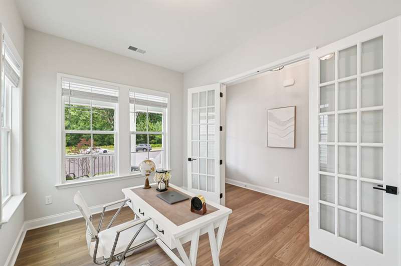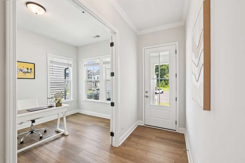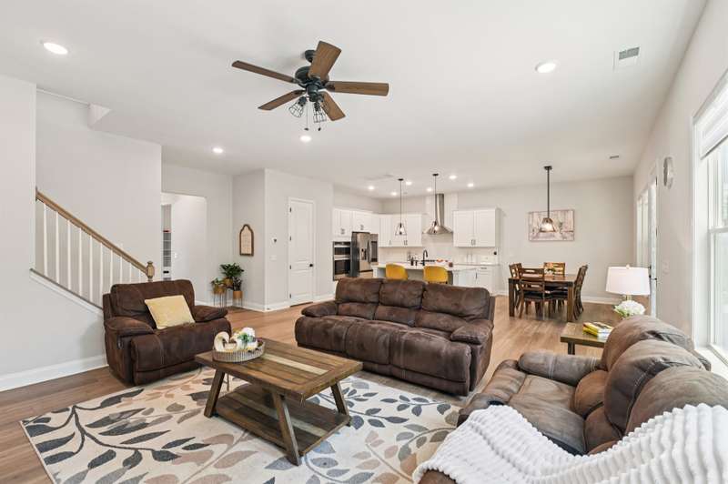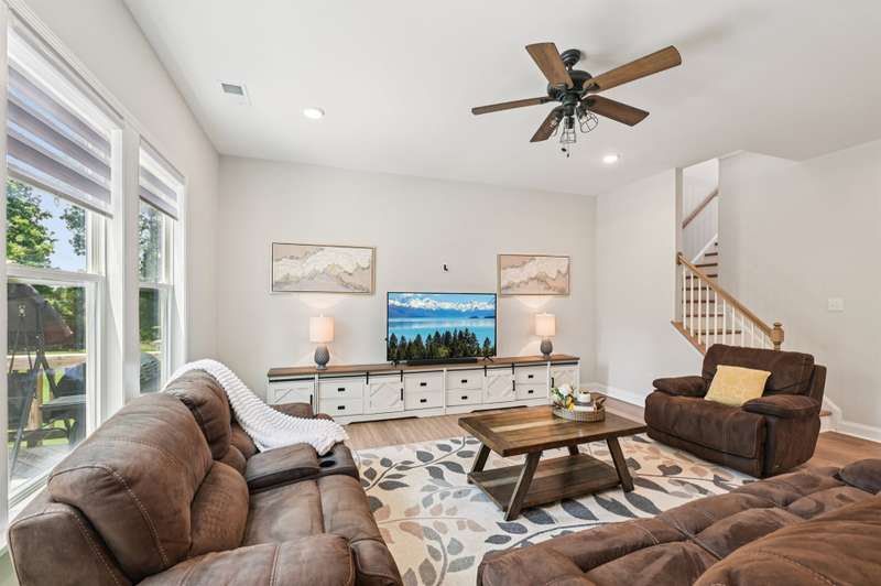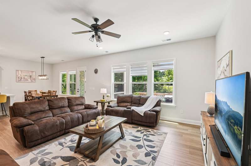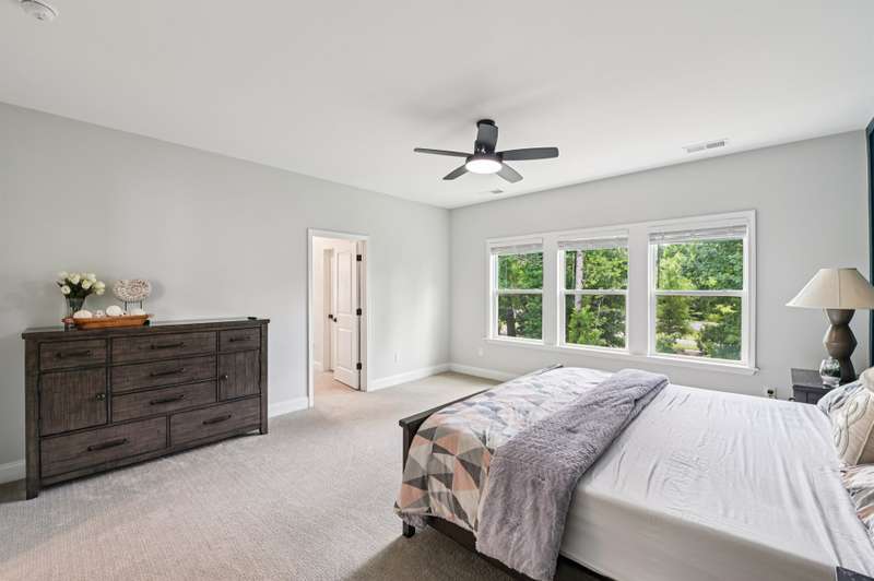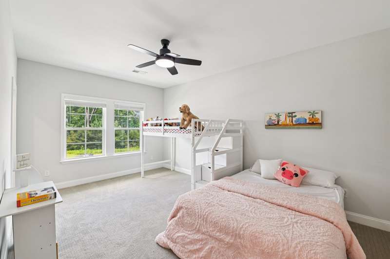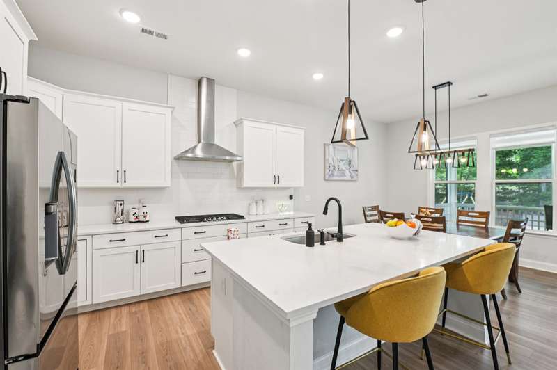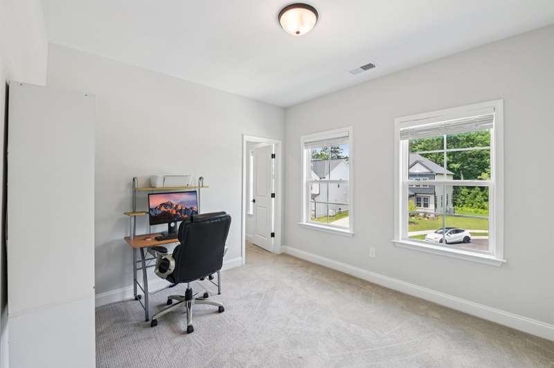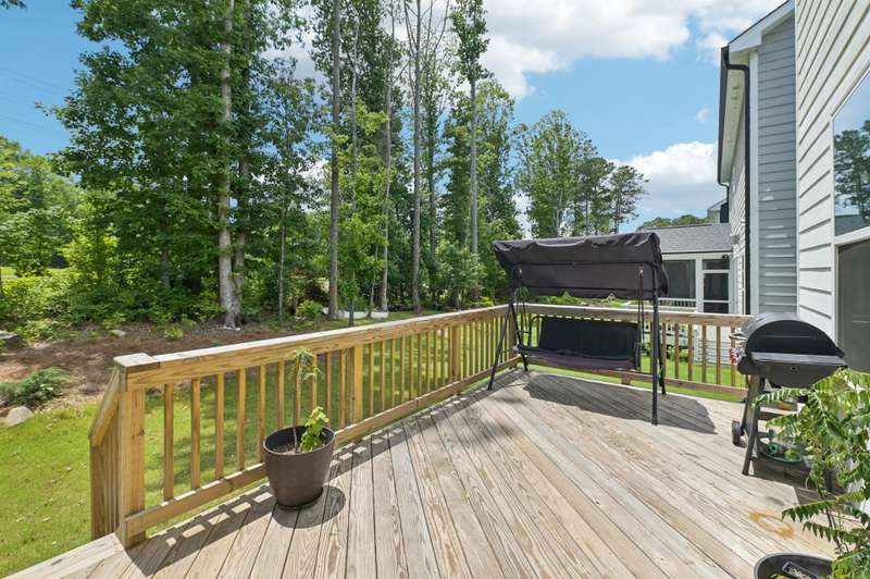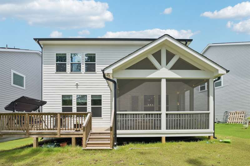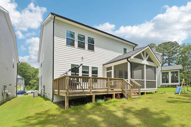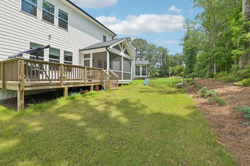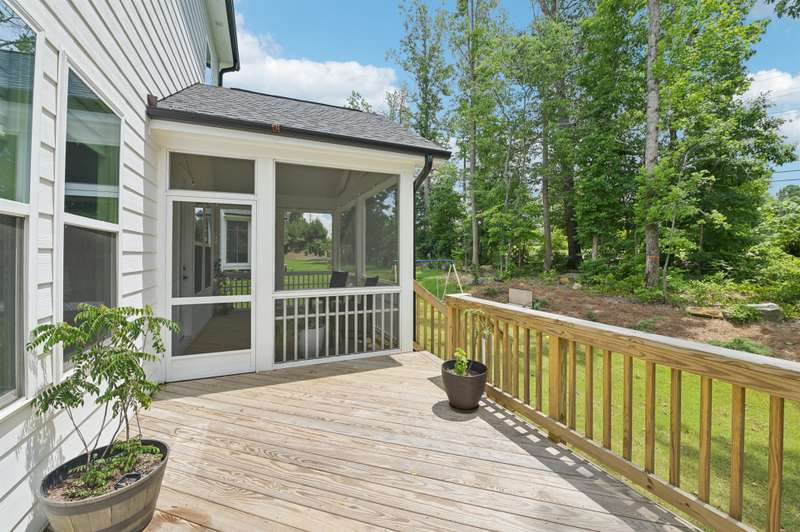 NEW PRICE + 1.5 YRS OF HOA DUES PREPAID. Located in a quiet cul-de-sac in The Park at Wimberly, this 2023 Ashton Woods home offers 5 bedrooms, 3.5 baths, a private study, and over 3,300 sq ft of well-designed living. Enjoy 10' ceilings, 8' doors, rich LVP floors, custom blinds, and a chef's kitchen with quartz counters and a large island opening to a spacious living area. The main floor includes a guest suite with full bath and a study with French doors. Upstairs features a versatile loft, expansive closets, and an elegant primary suite with accent wall, spa-style bath, and two walk-in closets. Outdoor spaces include a screened porch, extended deck, and charming front porch. The 2-car garage offers high ceilings and extra storage. This northeast-facing home is filled with natural light and located minutes from Beaver Creek Commons, Kelly Road Park, American Tobacco Trail, and RTP. Zoned for top-rated Wake County schools.