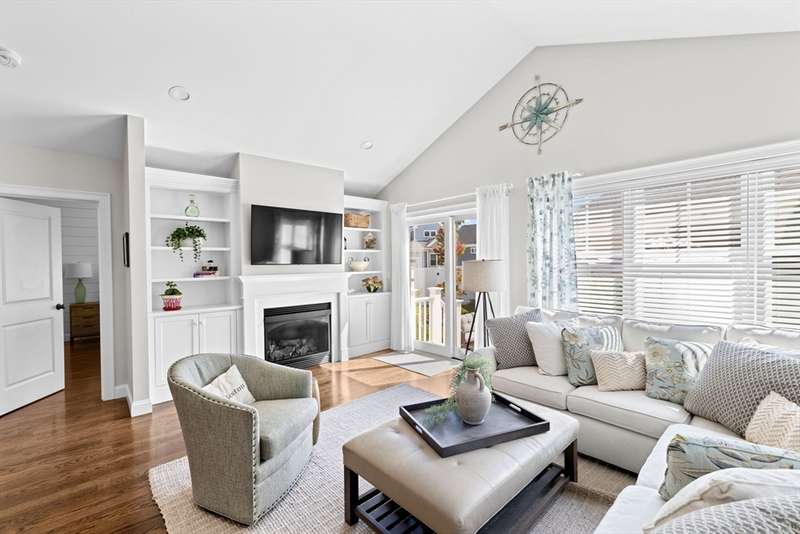 Discover this stunning open-concept home, perfectly situated near downtown Plymouth, where coastal charm meets modern convenience. Thoughtfully designed throughout, it offers versatile living spaces to suit a range of lifestyles including a chef-inspired gourmet kitchen. The warm and welcoming family room features a gas fireplace framed by elegant custom built-ins, while the adjoining backyard patio creates a seamless flow between indoor comfort and outdoor serenity, surrounded by lush gardens ideal for entertaining. A private living room provides a peaceful retreat or an ideal setting for a home office. Nestled in a vibrant 55+ community, this home offers a retreat-like atmosphere for active professionals or retirees seeking a year-round staycation.