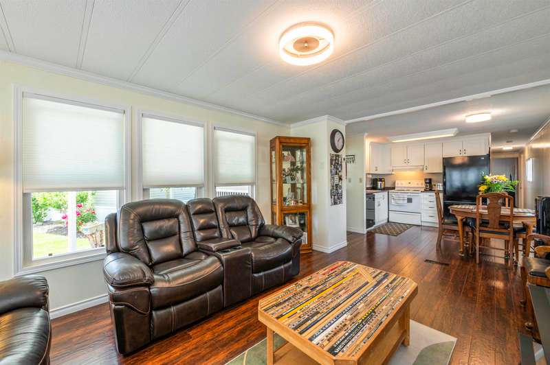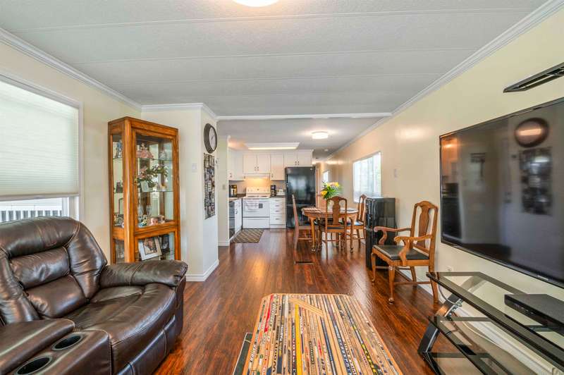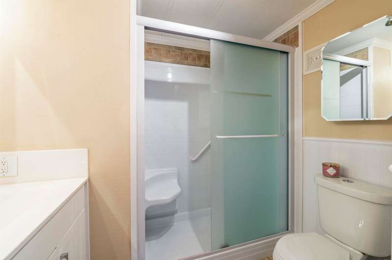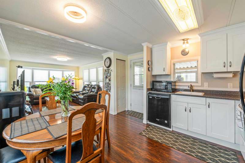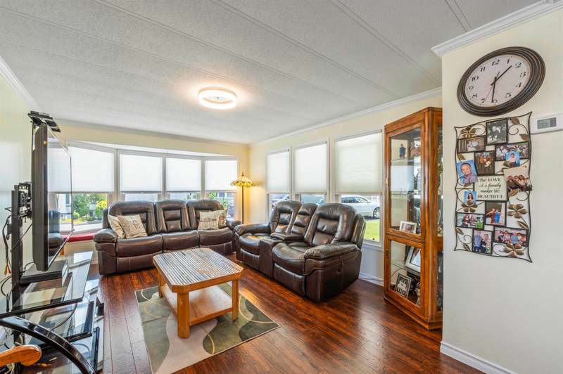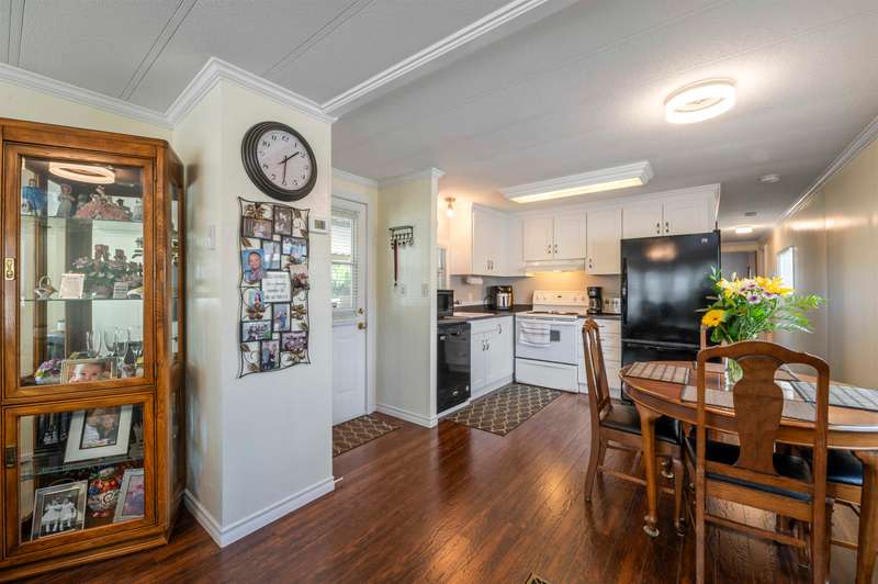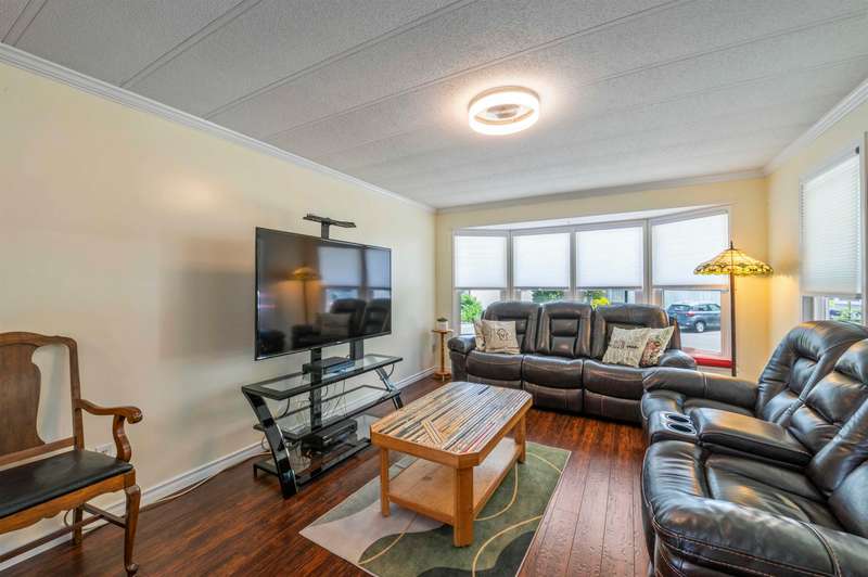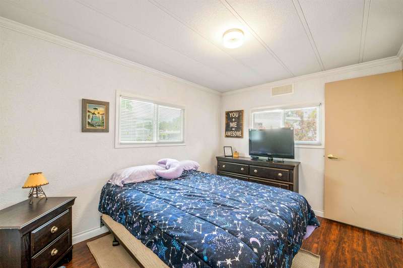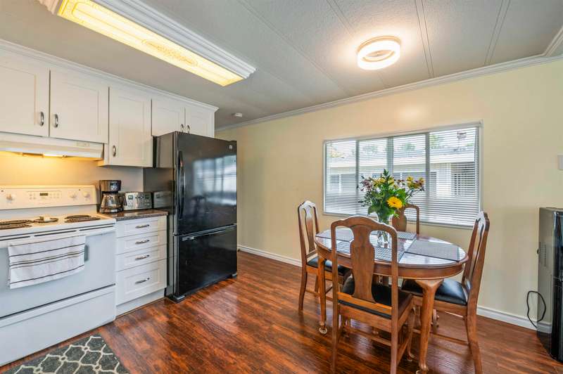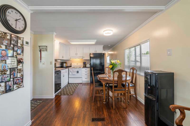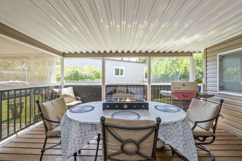 Great spot in sought-after Breakaway Bays Park. Families or Retirees don’t miss out on this 3 bedroom, 1 bathroom, with all the main things taken care of! Thermo windows, drywalled interior with added insulation, new lighting, windows, new paint, vinyl siding, blinds, enclosed deck with amazing up/down plexiglass windows for a great outdoor living space (200 sq ft) summer or winter!. 8’ X 10” Shed, lovely yard, Pet-friendly (2 pets allowed: cat/dog), no age restrictions! Amenities include a clubhouse, amenity room, outdoor heated pool, and beautiful walking trails. Close to Highway 99, transit, shopping, the beach, hospital, schools - RV Storage Available. The perfect place to call “Home”! Electricity is included in the pad rent!