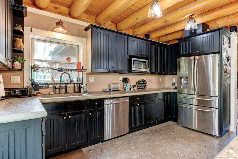 A mountain retreat of your very own! You enter by stepping up onto your covered wrap around porch. Just waiting for someone to enjoy after a long day at work or play. This log home has extra features throughout making this home very unique. Radiant geo-thermal heating,solar panels, two story fireplace, concrete floors that have added extra attention for beautification, copper kitchen sink,french doors leading to your backyard patio, a staircase to the loft with wrought iron railing. These are just some of the extras that compliment this home. Don't miss out on this unique home! Welcome home! Homeowner will consider lease to purchase option!