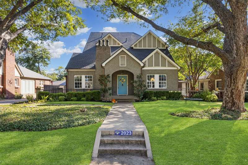 Nestled on a picturesque, tree-lined street in the heart of Berkeley Place, this beautifully expanded Tudor blends the character of the 1920s with thoughtful updates for todays lifestyle. The main home offers four bedrooms, two and a half baths, and nearly 2,900 square feet of light-filled living space, where warm hardwood floors, arched openings, and a gas fireplace honor the homes historic roots. The renovated kitchen features a Viking range, generous pantry, and inviting dining area ideal for gatherings. Modernized yet timeless, the floor plan includes spacious rooms, abundant storage, and a comfortable primary suite with large walk-in closet and well-appointed bath. Above the oversized garage, a 600-square-foot guest quarters provides a full bath and kitchenetteperfect for guests, work, or hobbies. Steps from the Fort Worth Zoo, Trinity Trails, shopping, and dining, this home captures the best of classic charm and modern comfort. **Virtual Tour and Floor Plan Available**