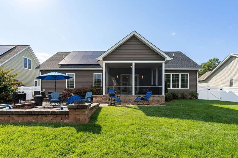 Look no further-this is the one! A custom-built, one-owner home in the HOT Stone Valley Community, designed with attention to detail and maintained to perfection. Offering just over 1,600 sq ft, it features an open floor plan, split bedroom design, soaring ceilings, and no steps. The bright white kitchen anchors the space, while the screened-in porch and fenced backyard with mountain views provide outdoor enjoyment and privacy. Immaculate landscaping and a stone-accented front add curb appeal. Best of all? Solar panels keep the power bill to just $8 a month! Walkable, convenient, and one-of-a-kind-this home is move-in ready.