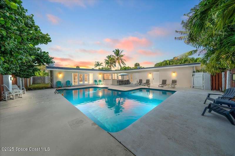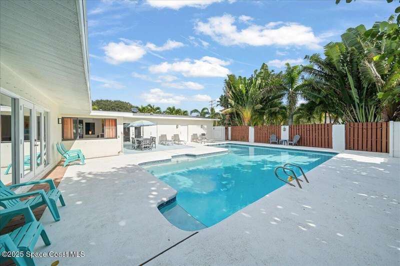 Don't miss this turnkey property in the heart of downtown Cocoa Beach, perfect as a vacation rental, second home or primary residence! This 4 bedroom, 3 full bathroom, concrete block home offers everything you need for a tropical escape or everyday retreat. With a unique open floor plan and a spacious private swimming pool, its ideal for family gatherings. The fenced backyard will keep your pets and children safe as you enjoy the sunshine! Sitting on a 3rd of an acre corner lot, the home features stunning quartz countertops, custom open shelves and an oversized pool and deck. The thoughtful layout includes a private owner's suite with a fireplace and French doors leading to the pool. Just 2 blocks from the beach and within walking distance to popular restaurants, you're only 5 minutes from Ron Jon Surf Shop, 15 minutes to Port Canaveral and 30 minutes to the Kennedy Space Center. Orlando International Airport and Disney world are both about an hour away. Schedule today!